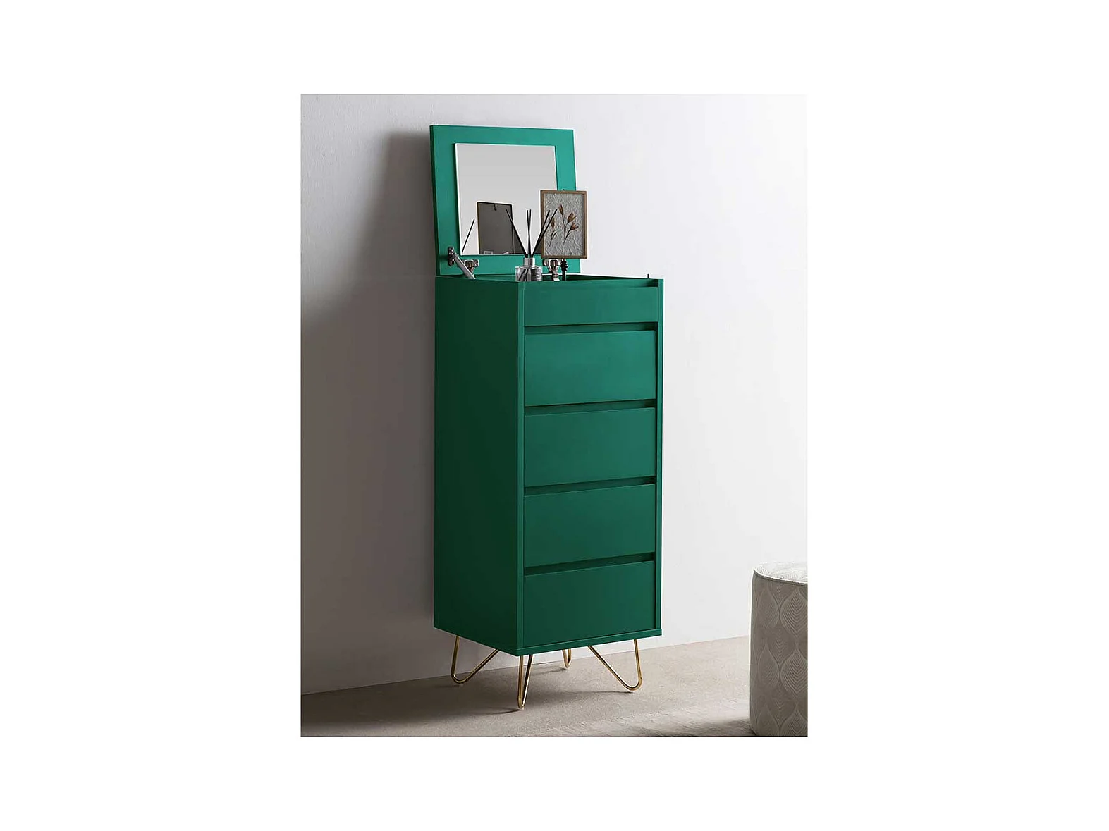Schminkkonsole in Grün und Gold vier Schubladen
