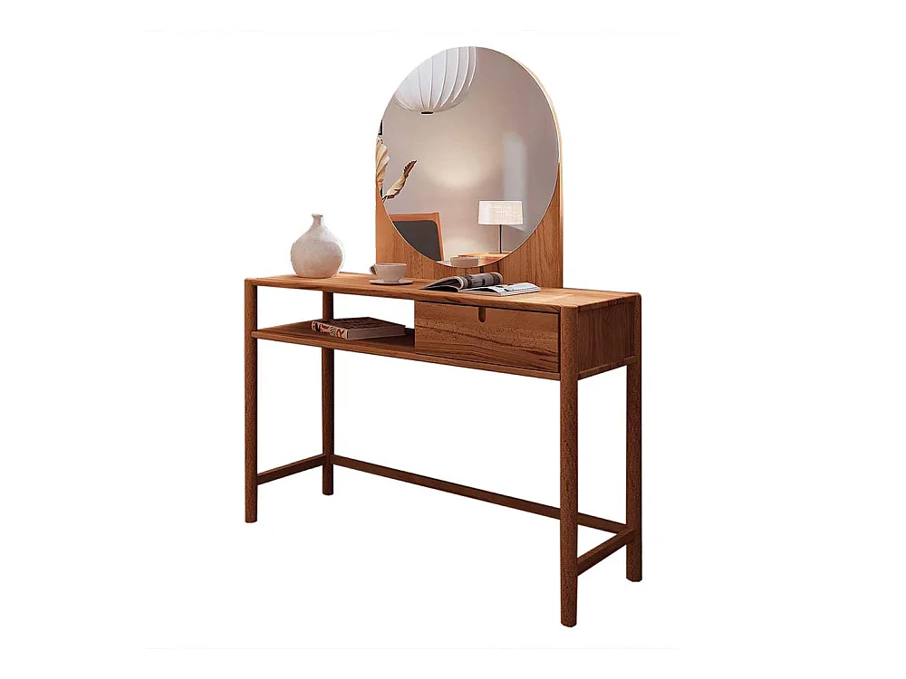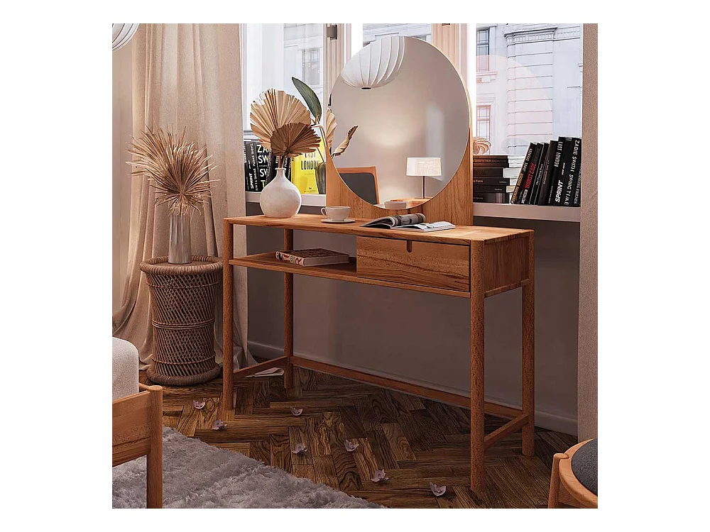 Schminkkonsole mit Spiegel aus Wildbuche Massivholz 120 cm breit (zweiteilig)