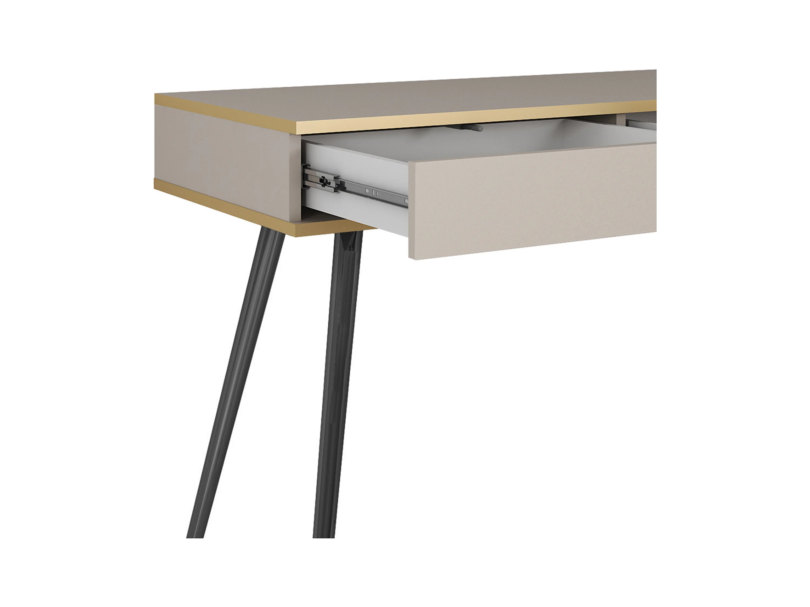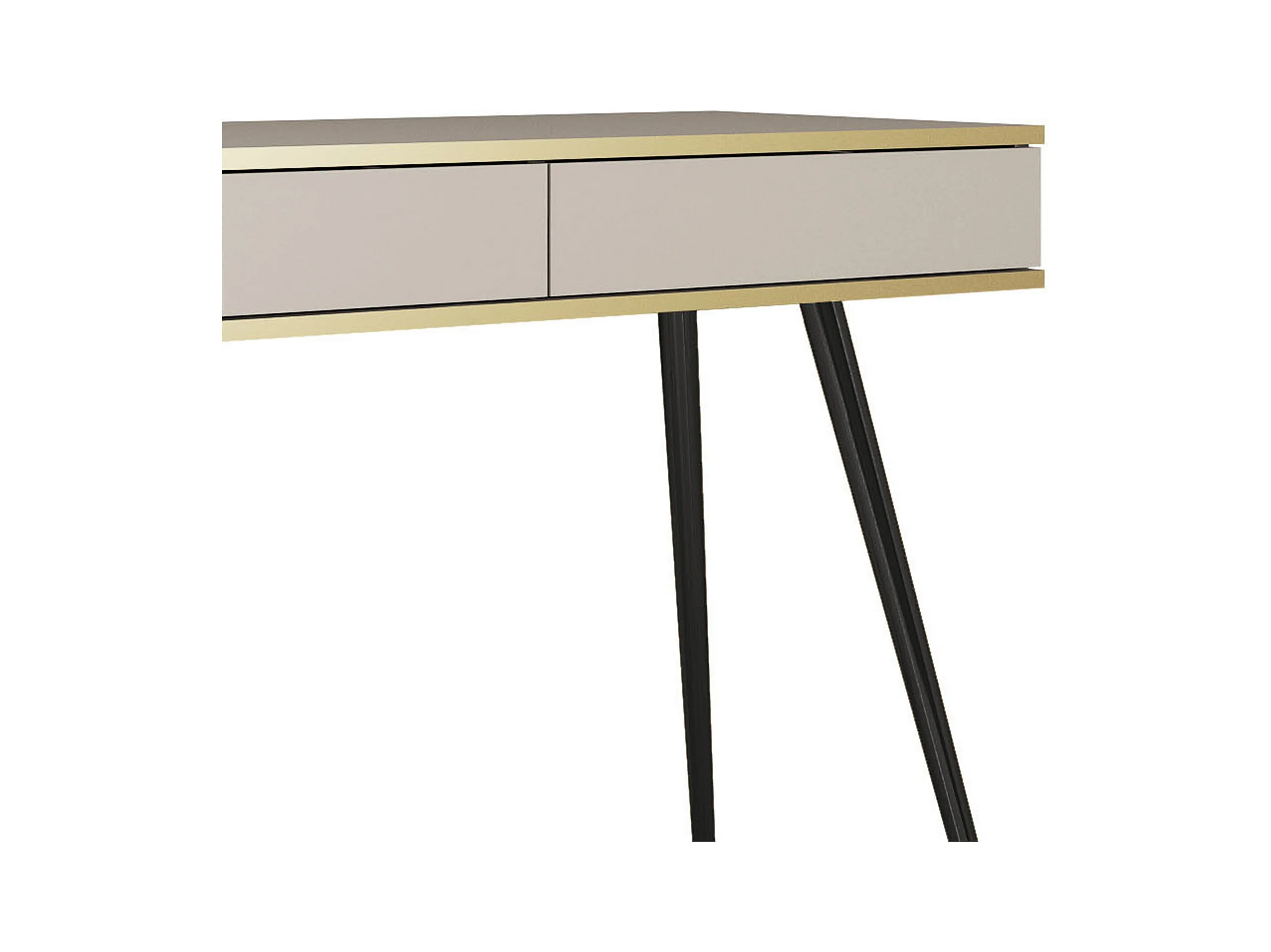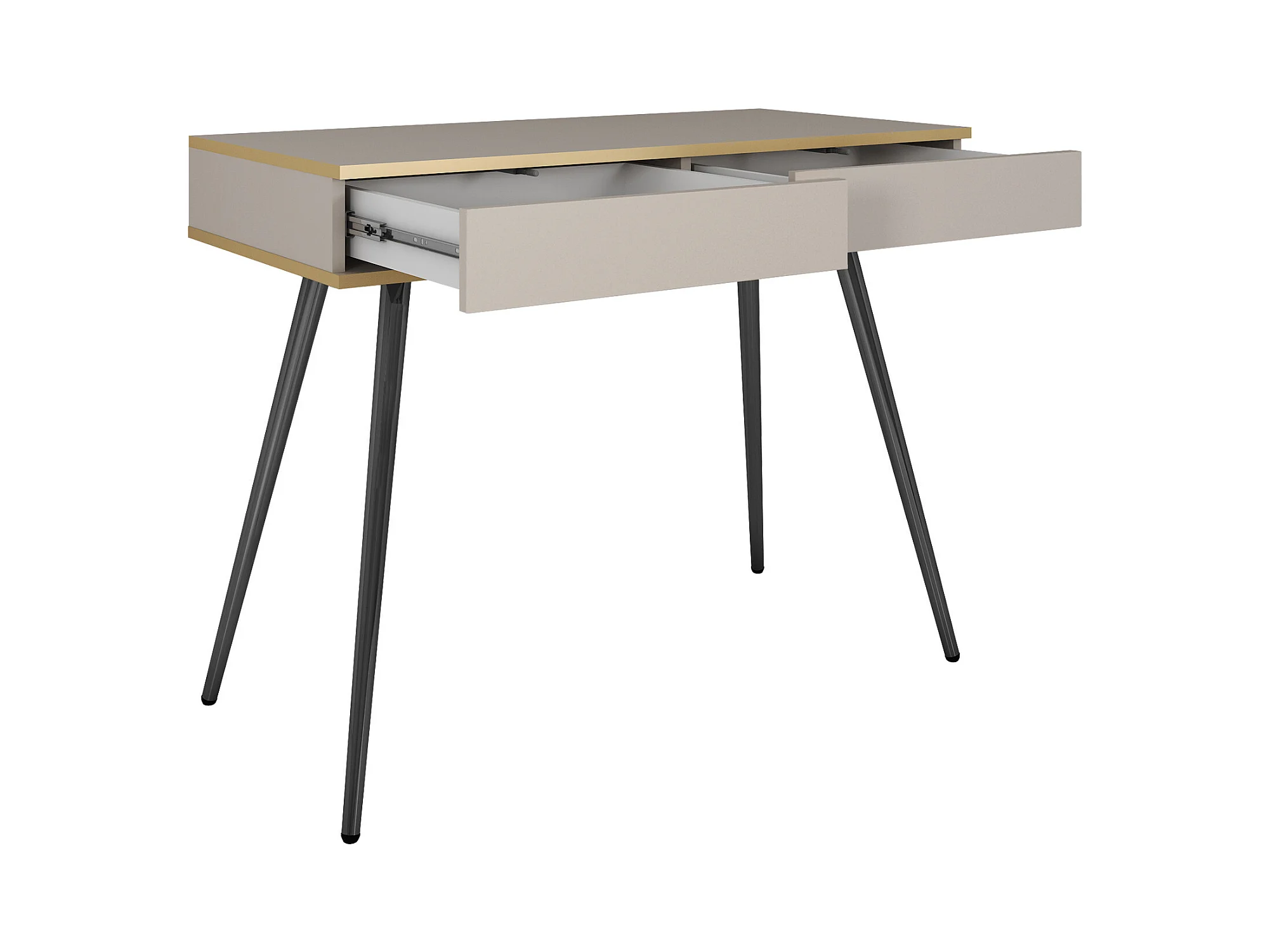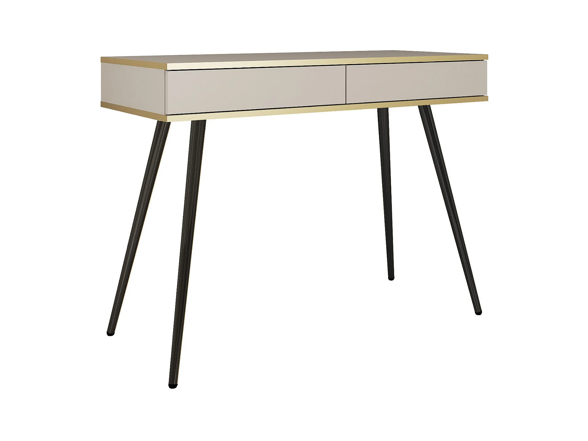 Schminktisch 102x80x50 cm, Beige, 2 Schubladen, glatte Front, kratzfeste Platte, Metallbeine Schwarz, Push-to-Open