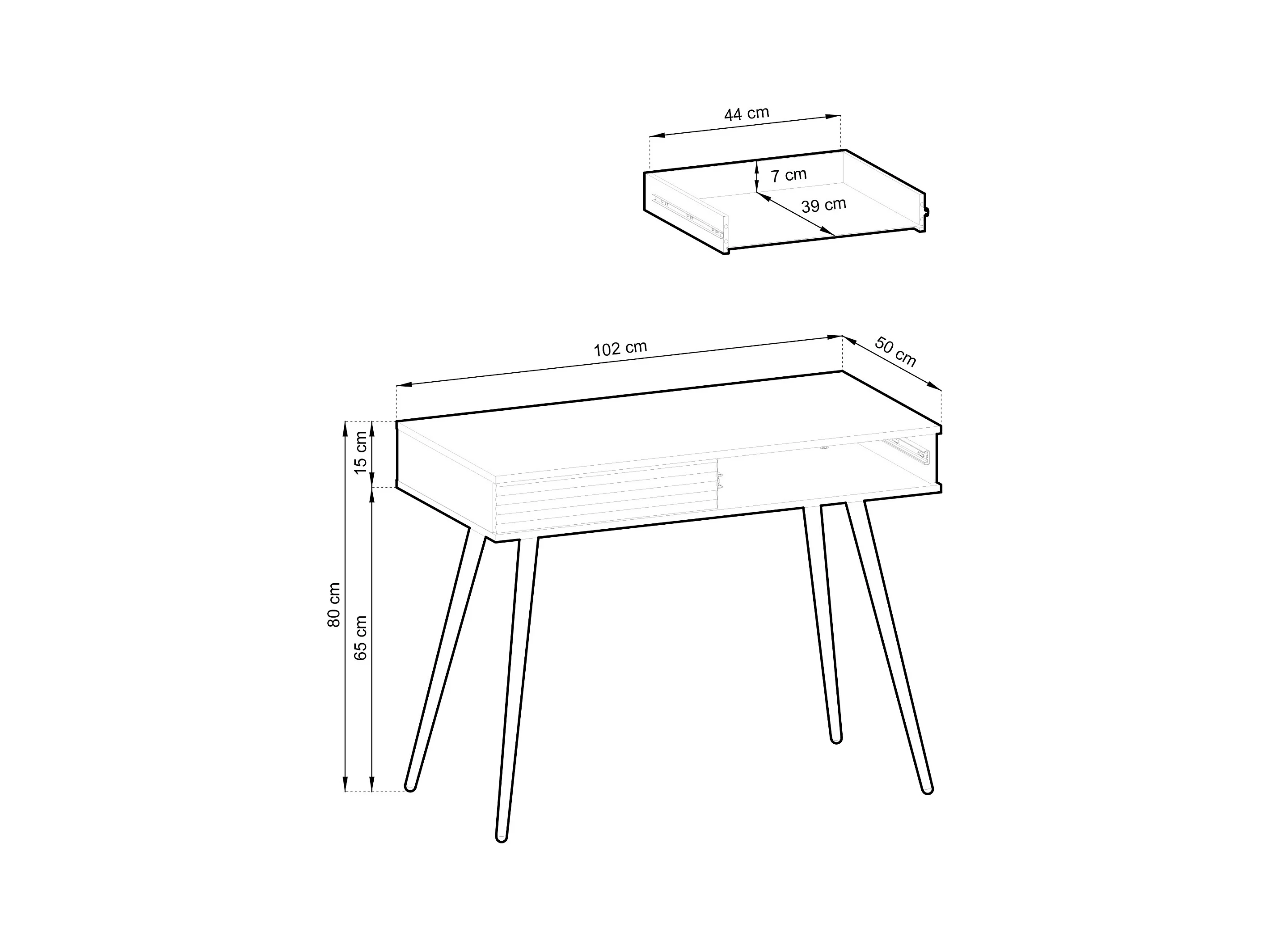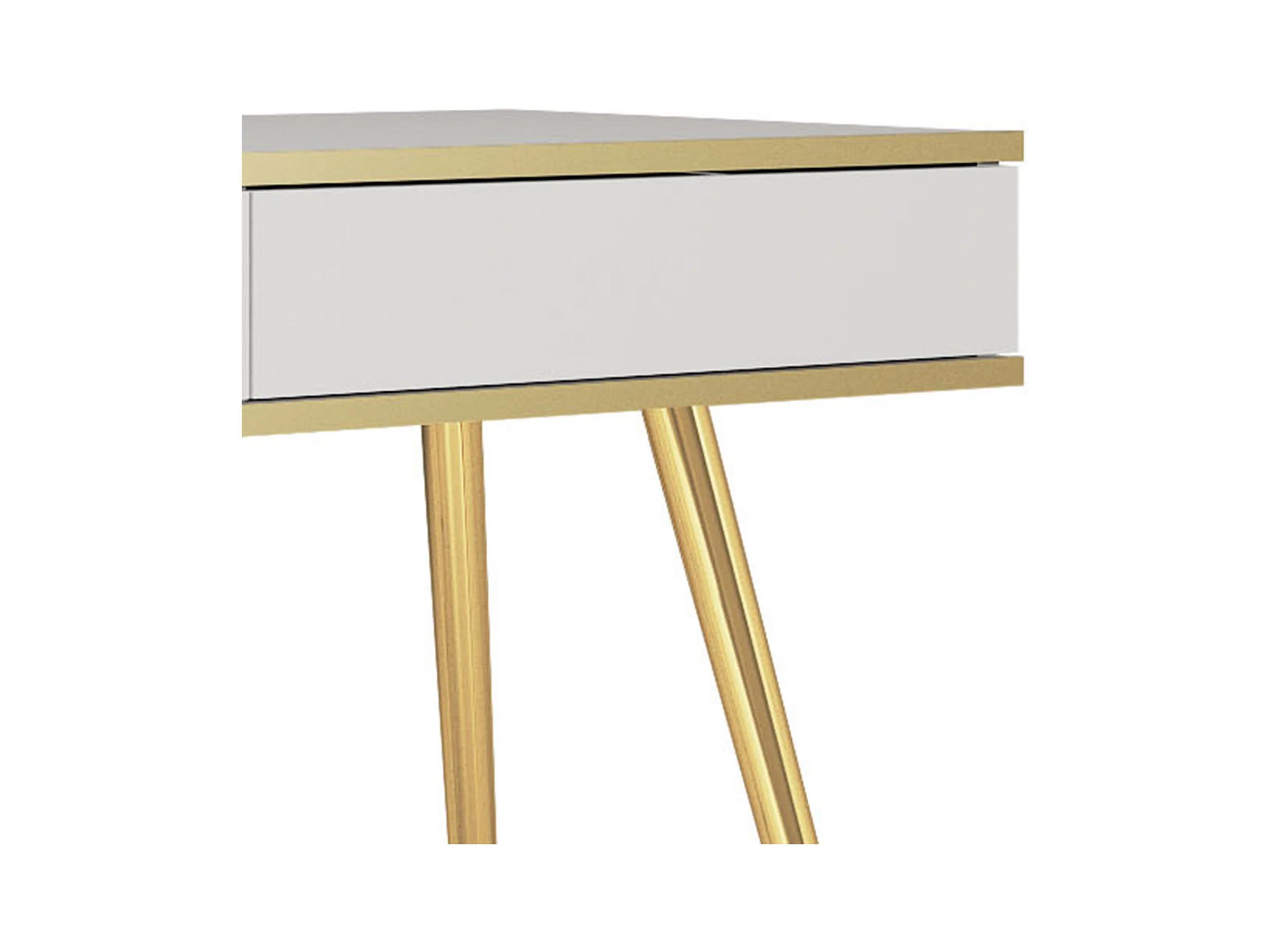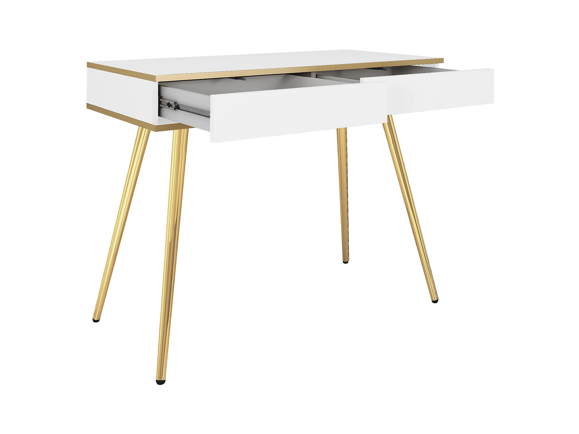 Schminktisch 102x80x50 cm, Weiß, 2 Schubladen, glatte Front, kratzfeste Platte, Metallbeine Gold, Push-to-Open