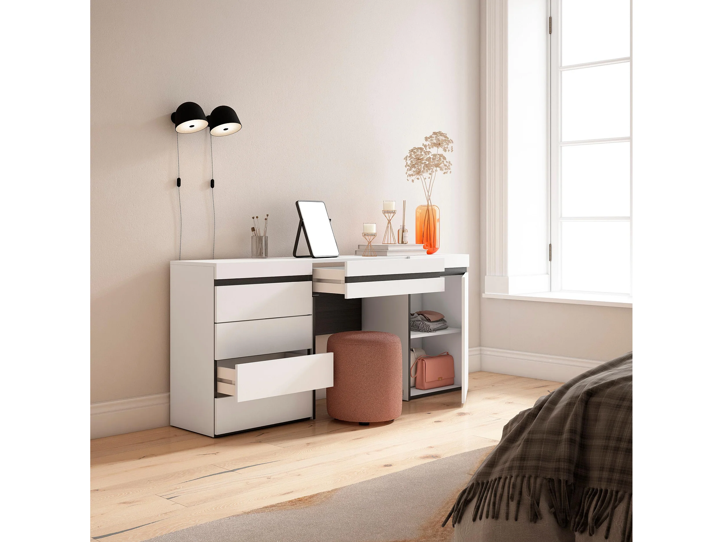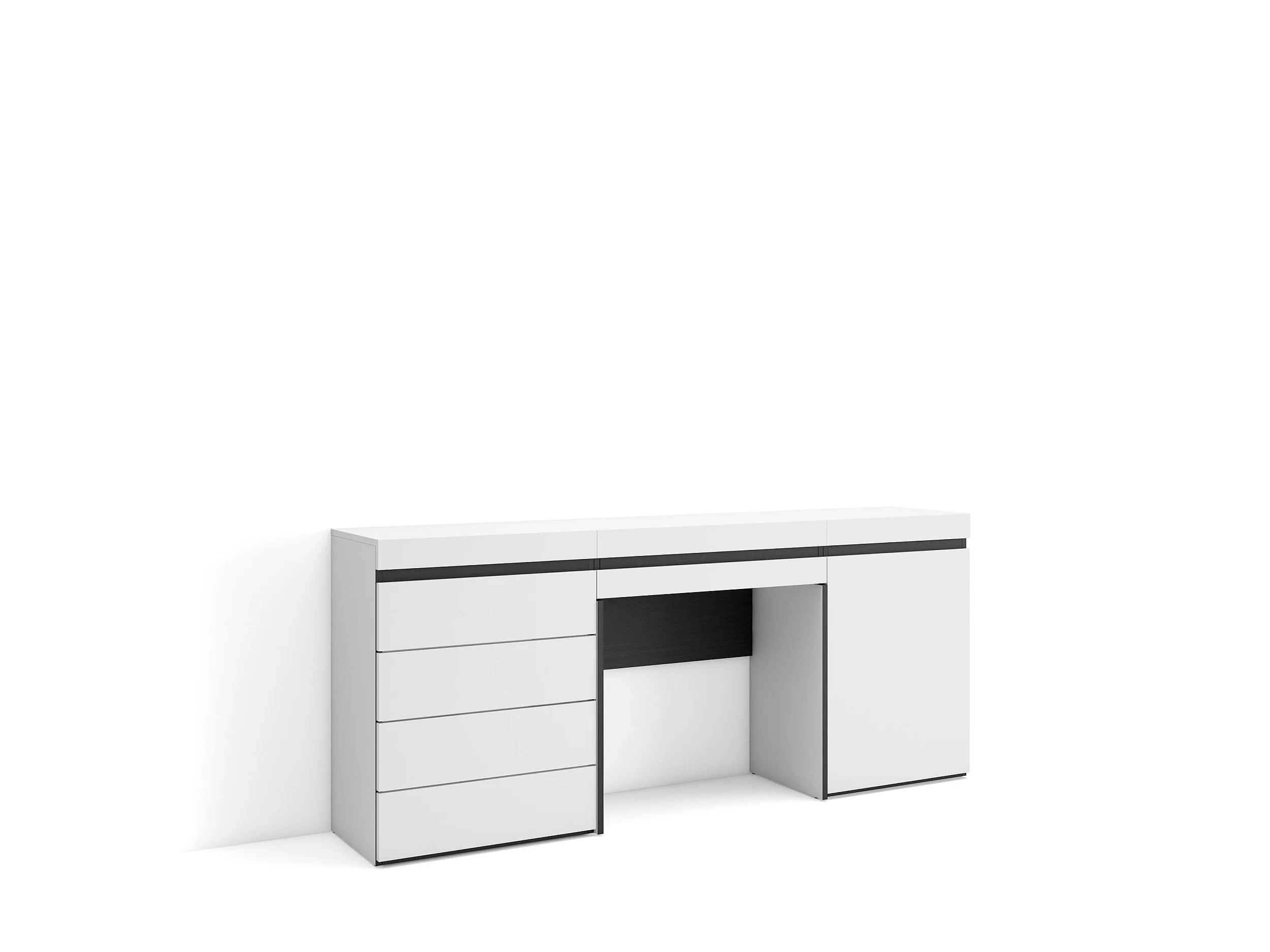 Schminktisch, 177x35x75cm, mit Schublade, Kommode mit Schubladen, Weiß