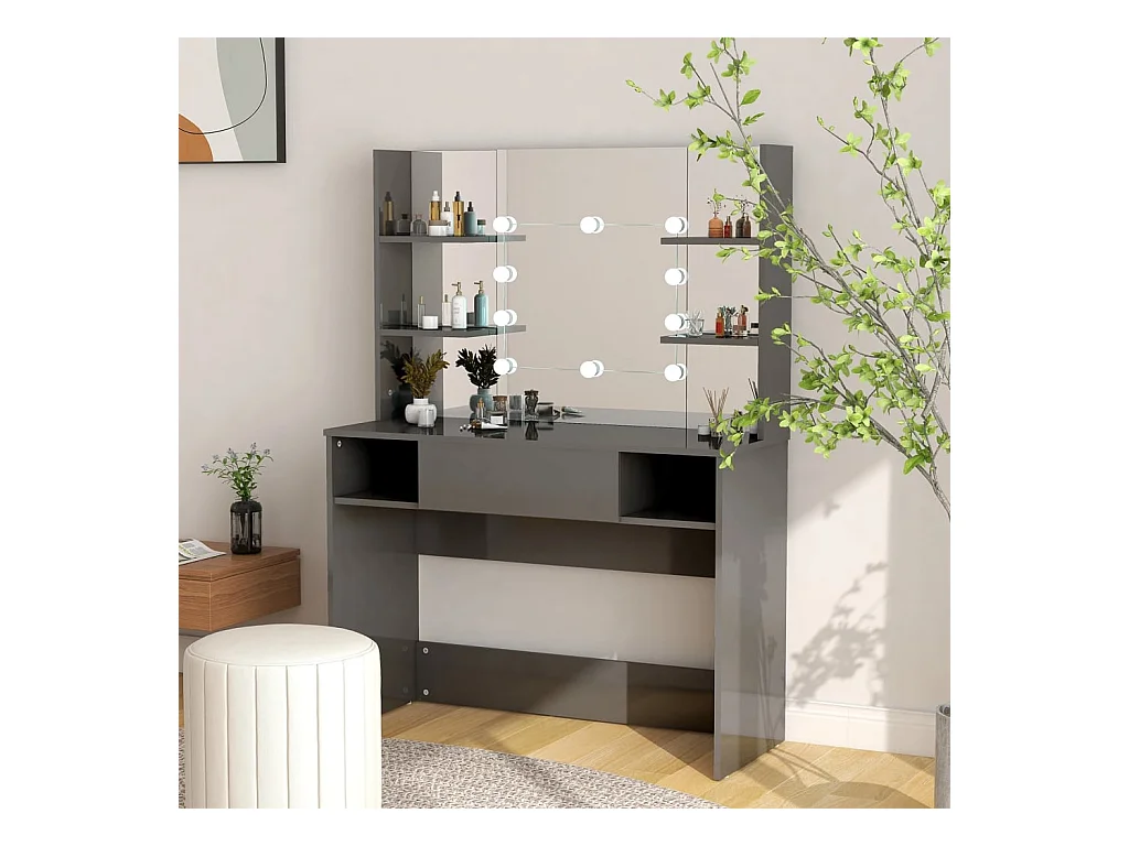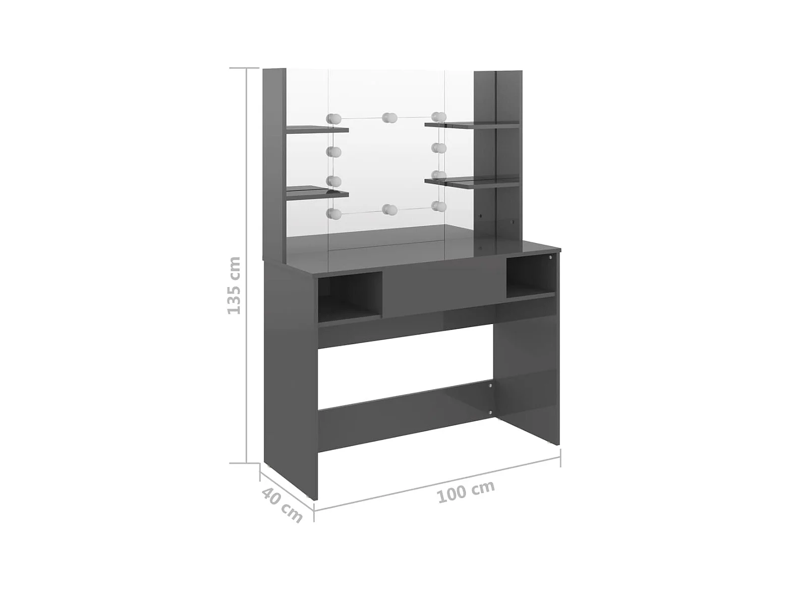 Schminktisch LED-Beleuchtung 100x40x135 cm MDF Glänzendes Grau