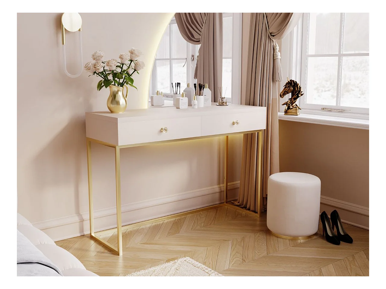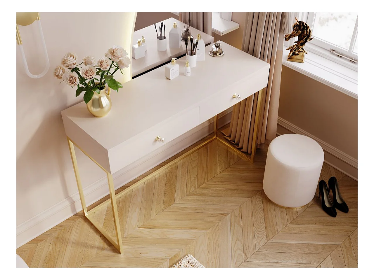 Schminktisch mit 2 Schubladen - 104/78/50 cm - Cremefarben mit goldfarbenen Metallbeinen