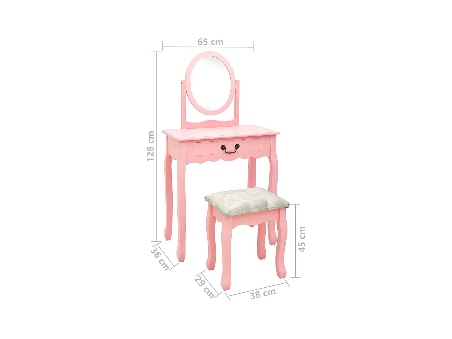 Schminktisch mit Hocker Rosa 65x36x128 cm Paulownia-Holz MDF
