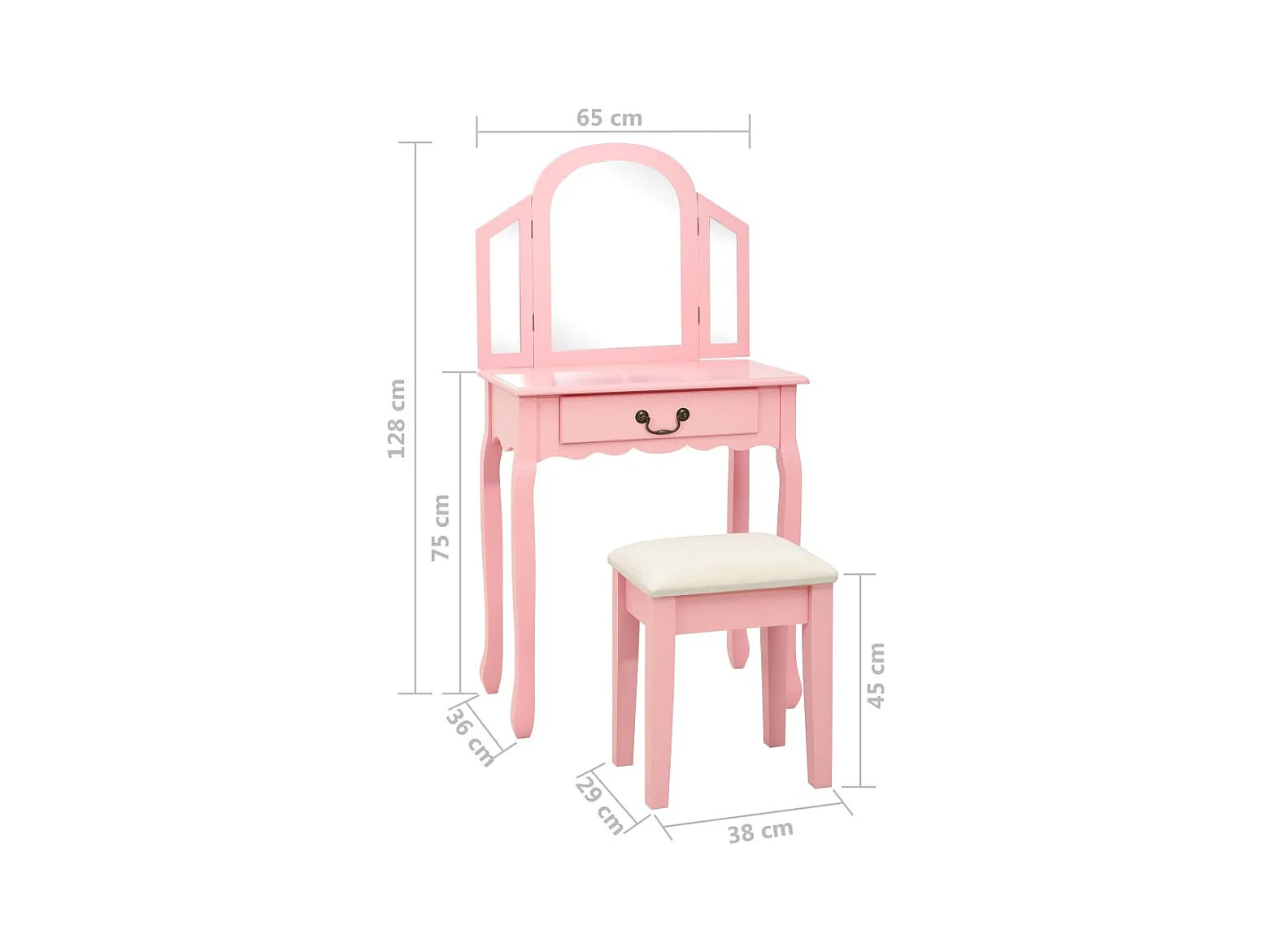 Schminktisch mit Hocker Rosa 65x36x128 cm Paulownia-Holz MDF