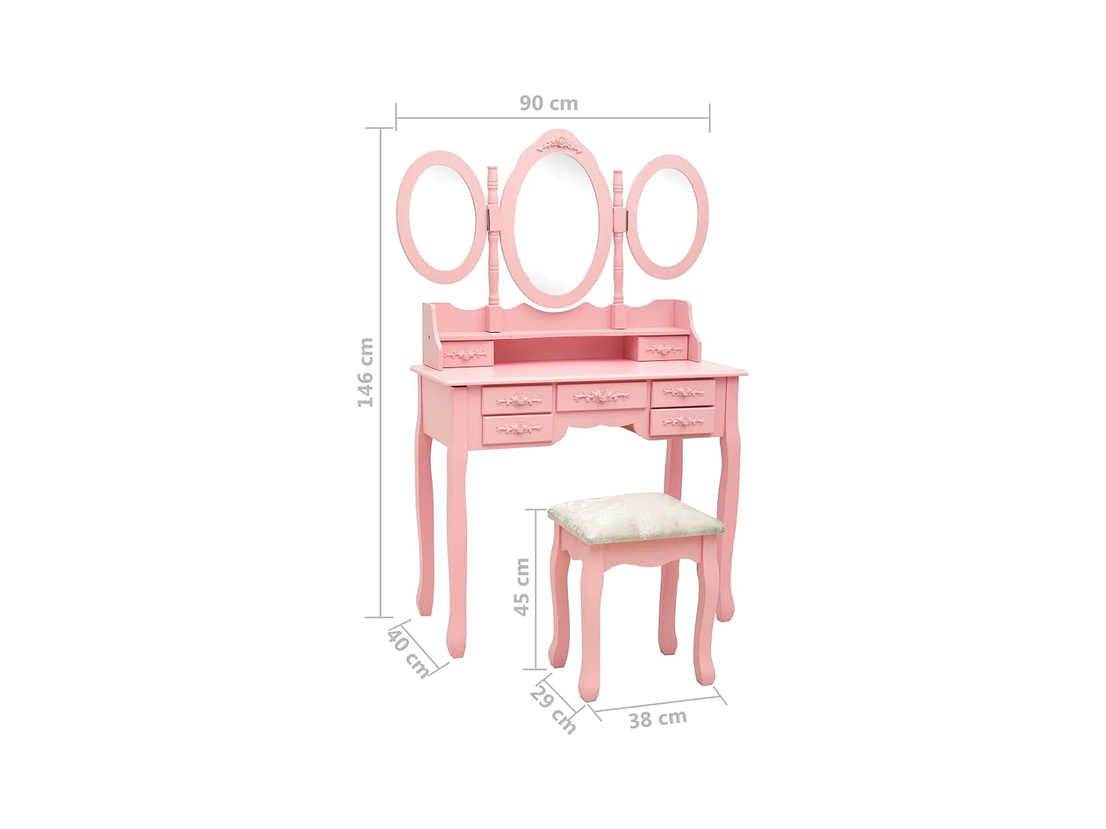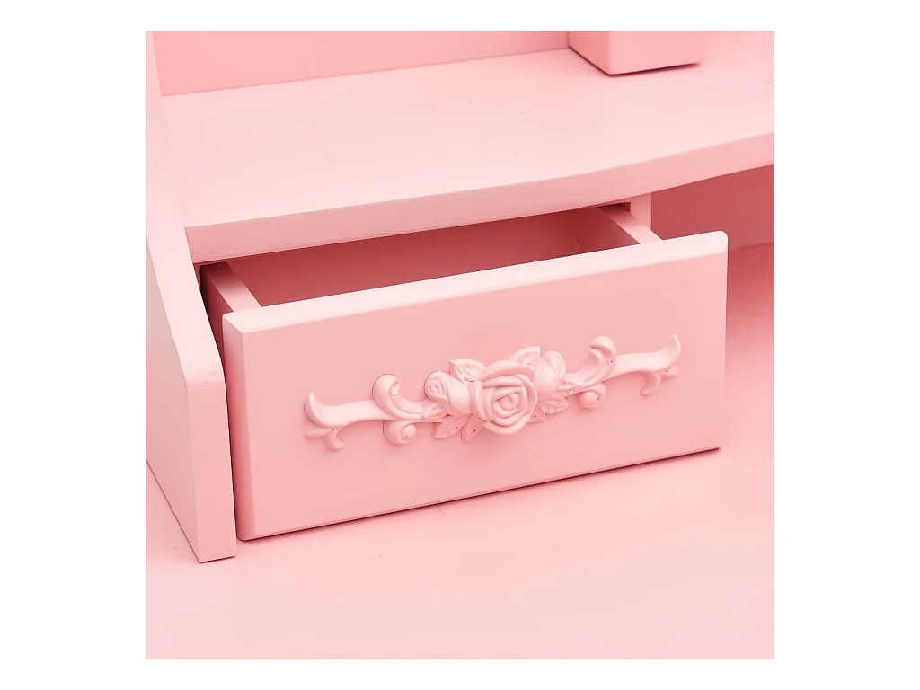 Schminktisch mit Hocker und Dreifach-Spiegel Rosa