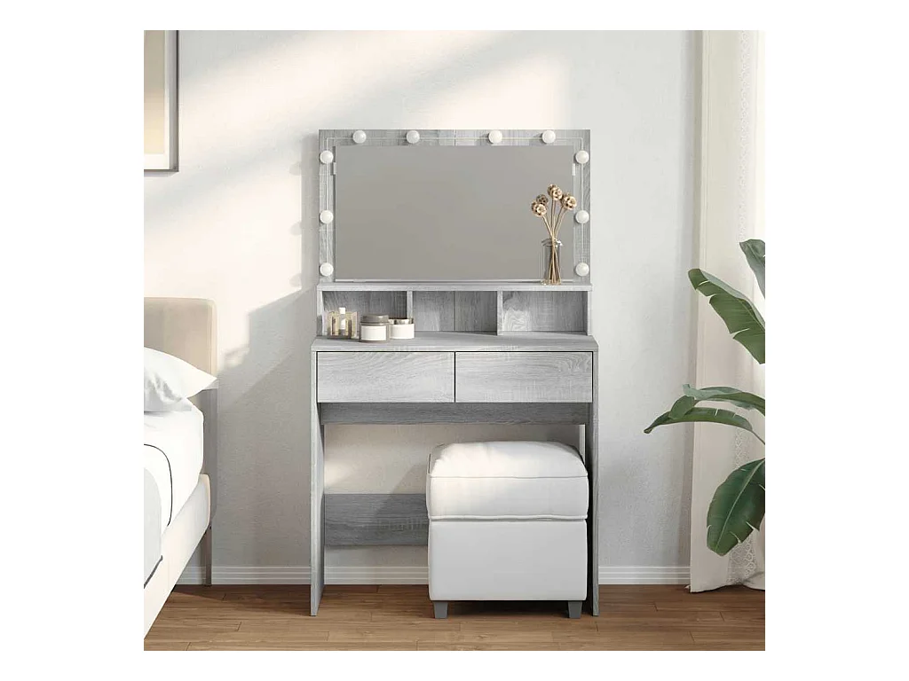 Schminktisch mit LED-Beleuchtung Grau Sonoma 80x41x134,5 cm