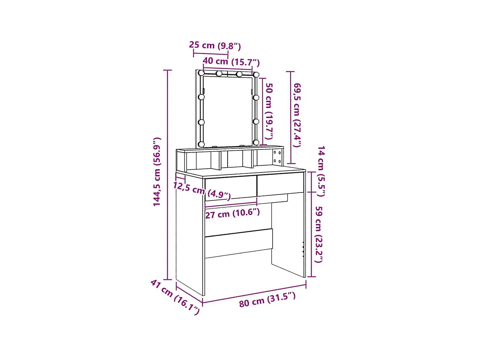 Schminktisch mit LED-Beleuchtung Grau Sonoma 80x41x144,5 cm
