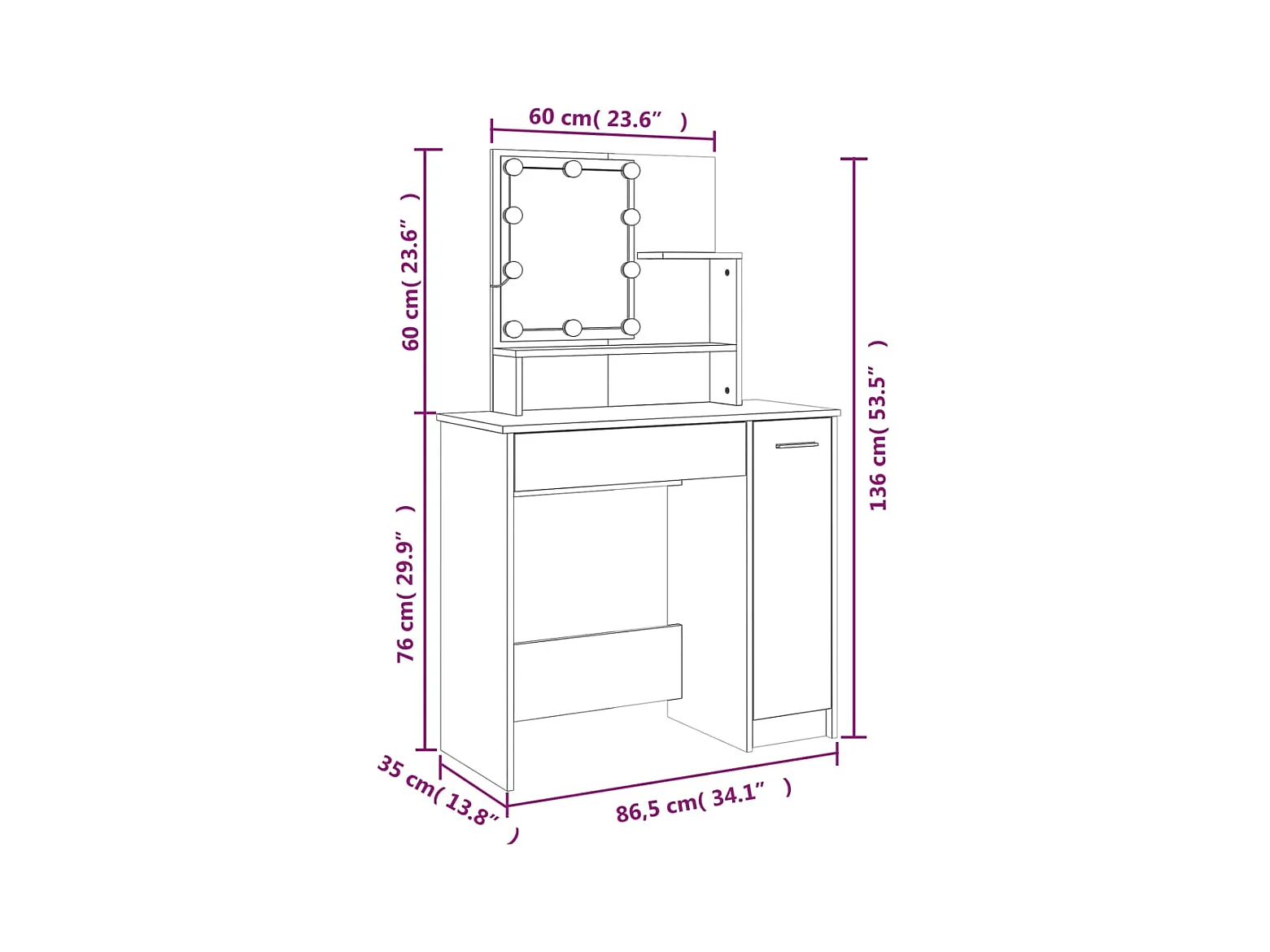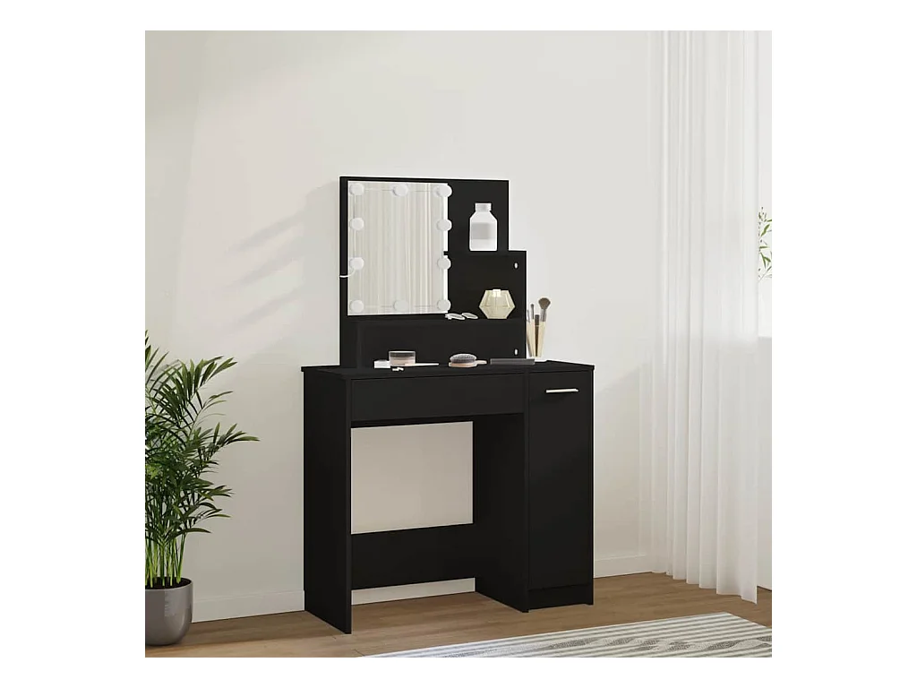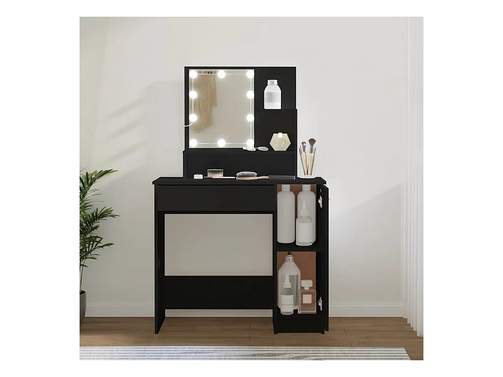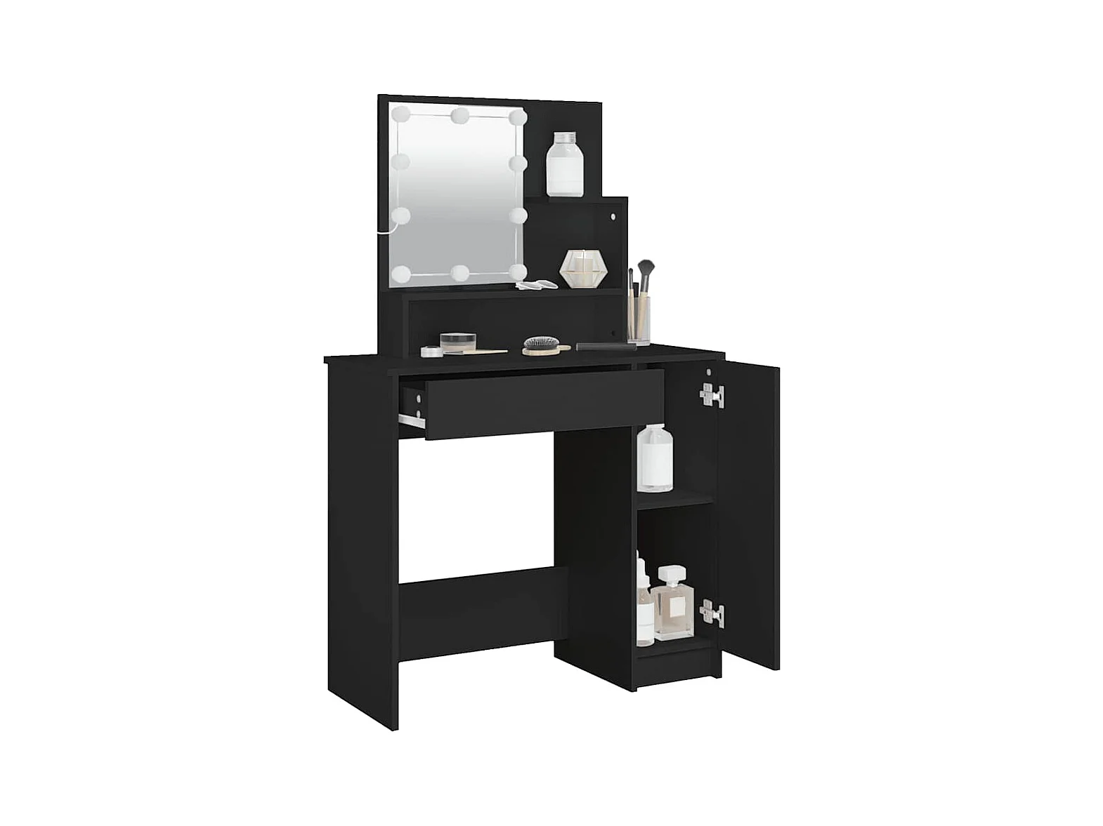 Schminktisch mit LED Schwarz 86,5x35x136 cm