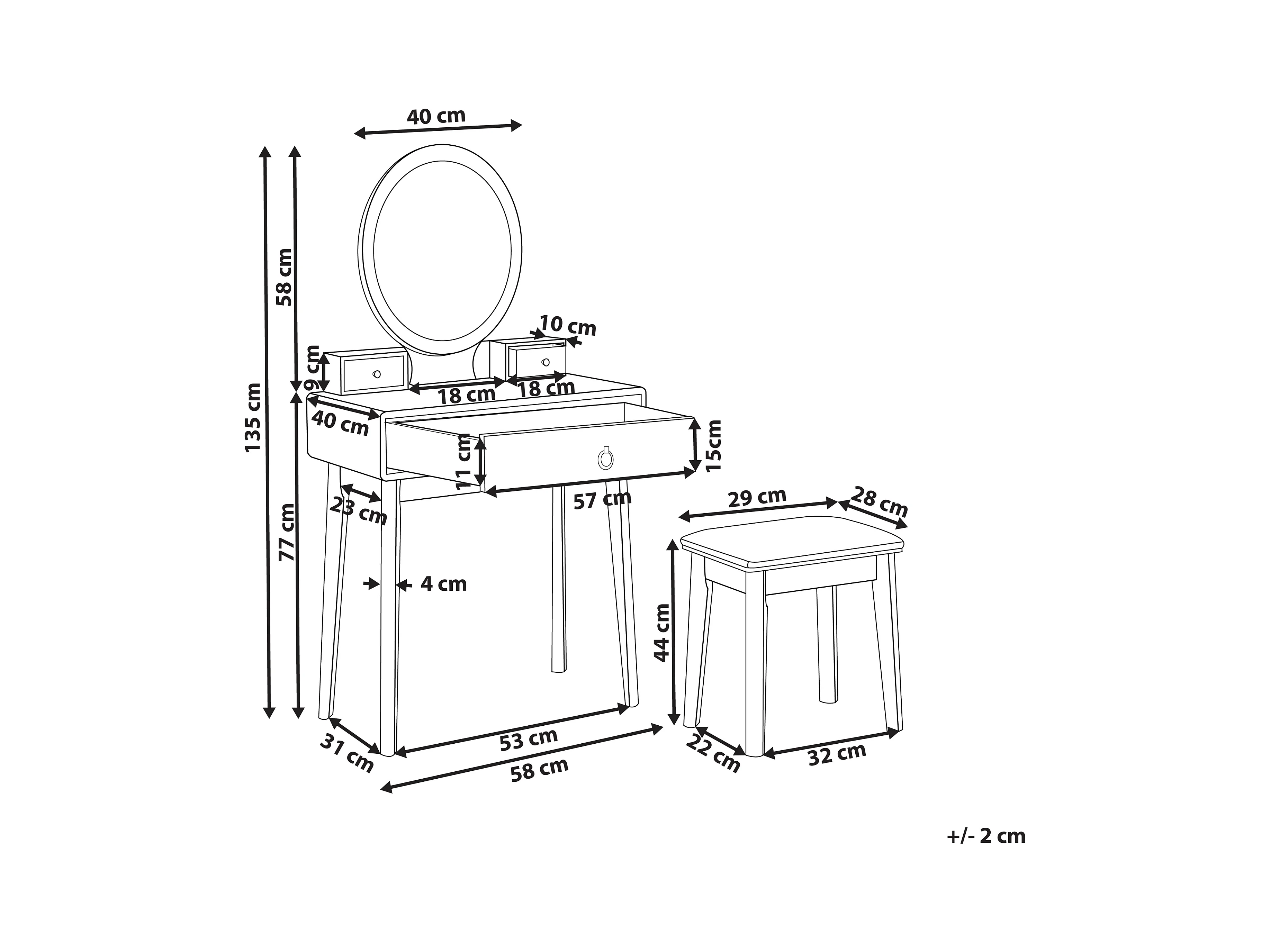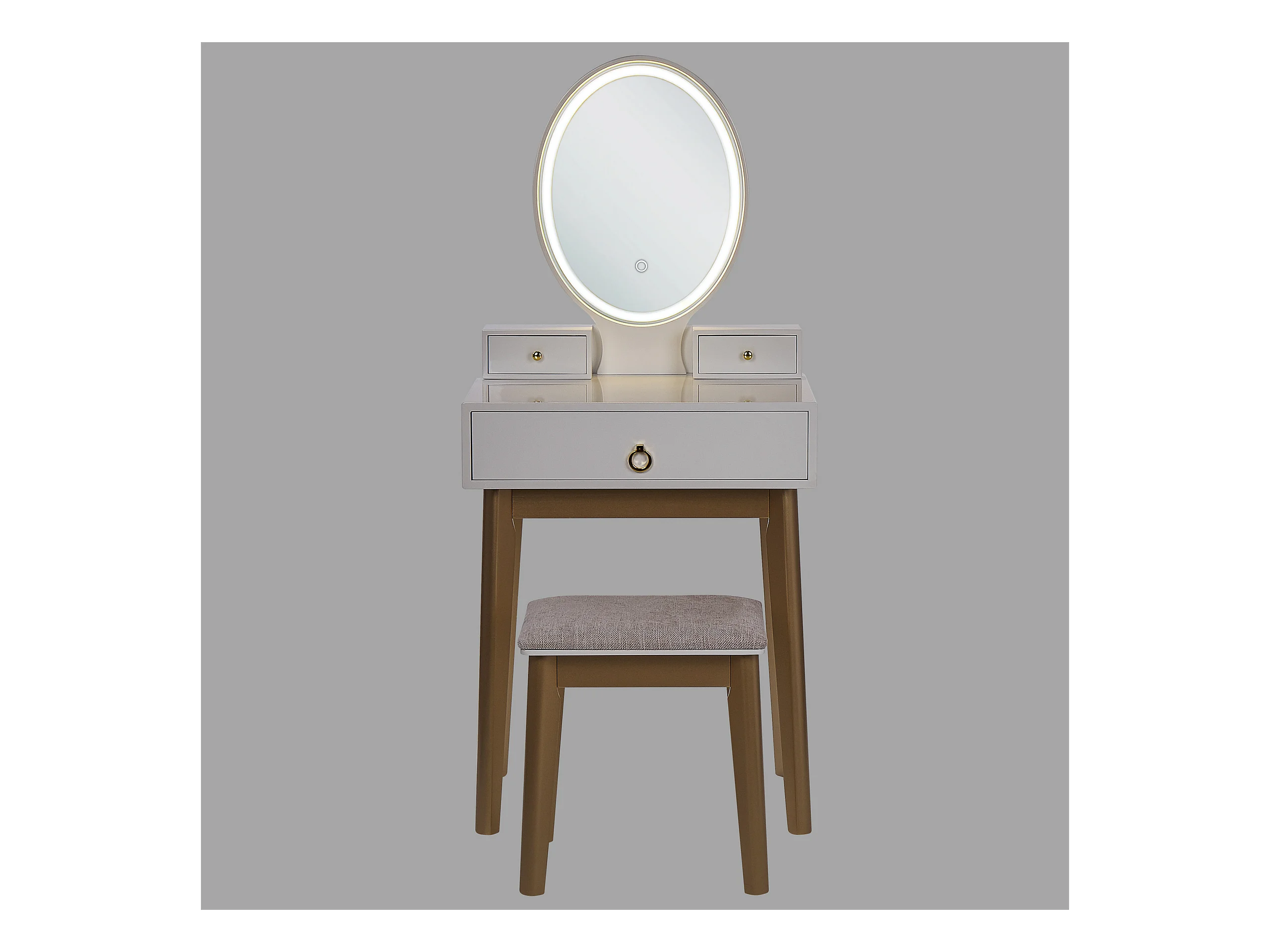 Schminktisch mit LED-Spiegel oval 3 Schubladen Hocker weiß Glamour Rosey