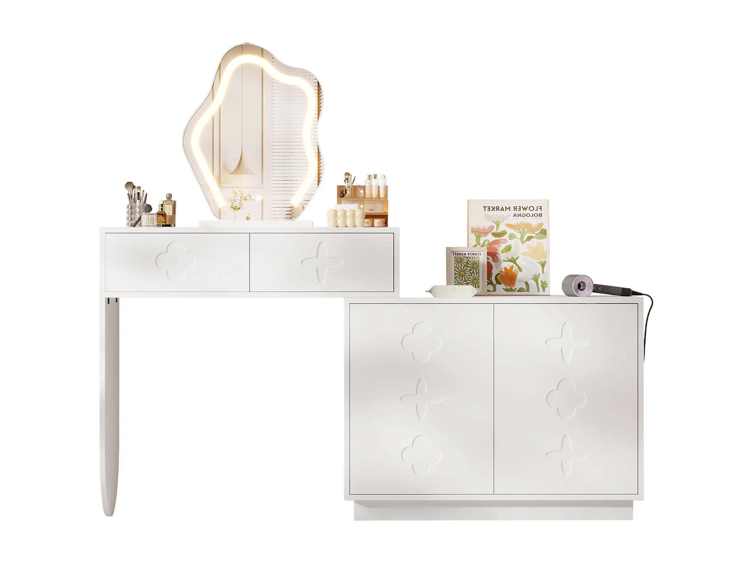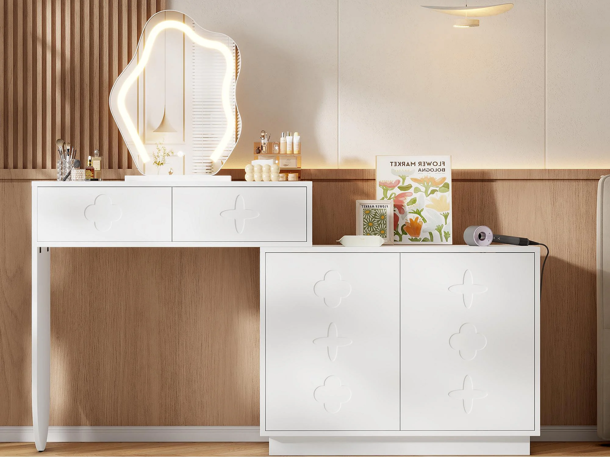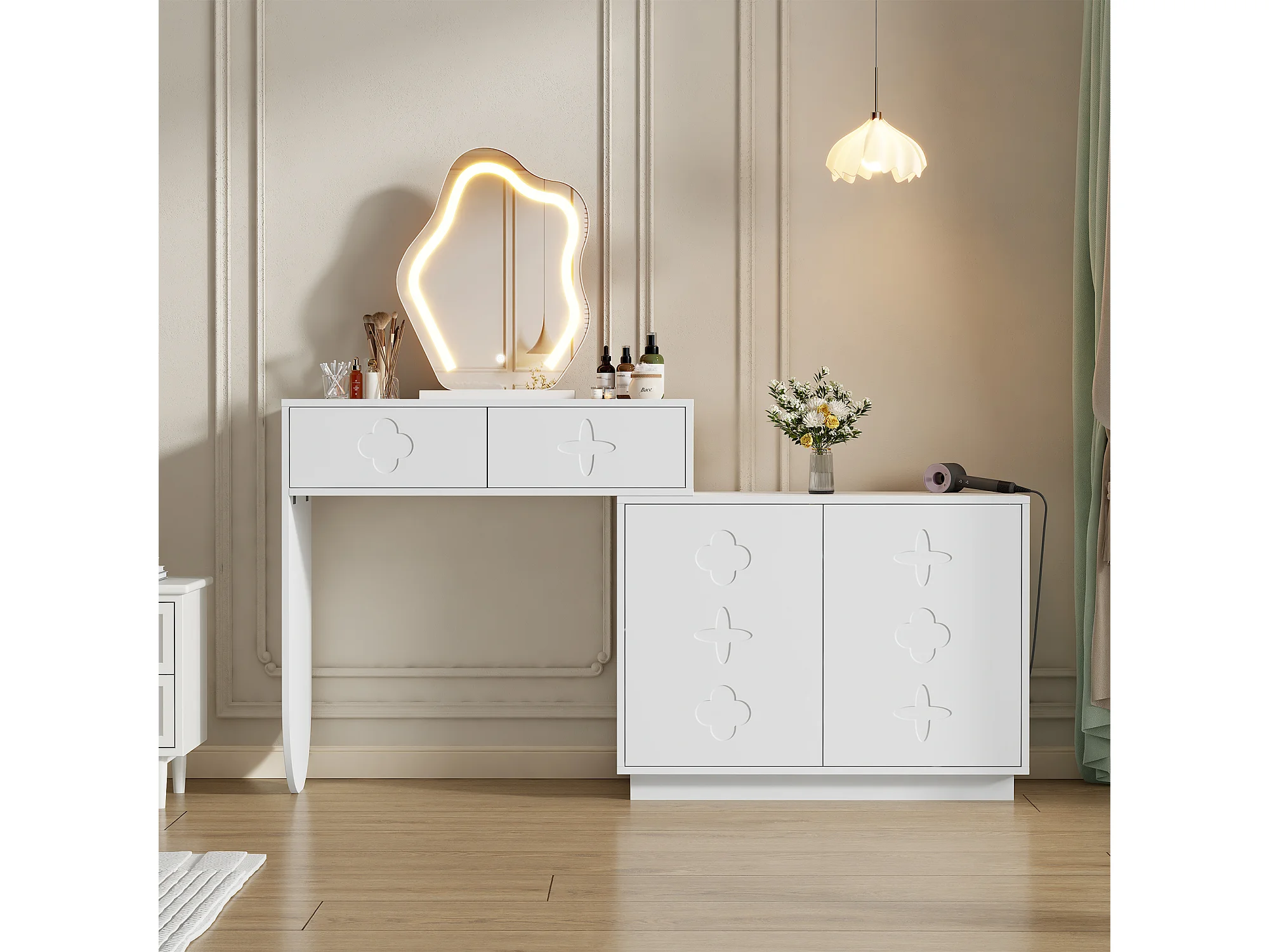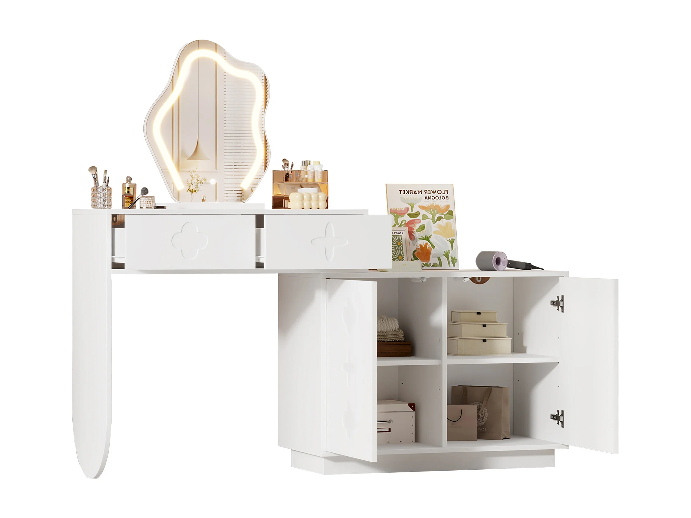Schminktisch mit Spiegel 160x40x132cm - mit verstellbarer LED-Beleuchtung - mit 2 Schubladen und 2 Türen - Weiß