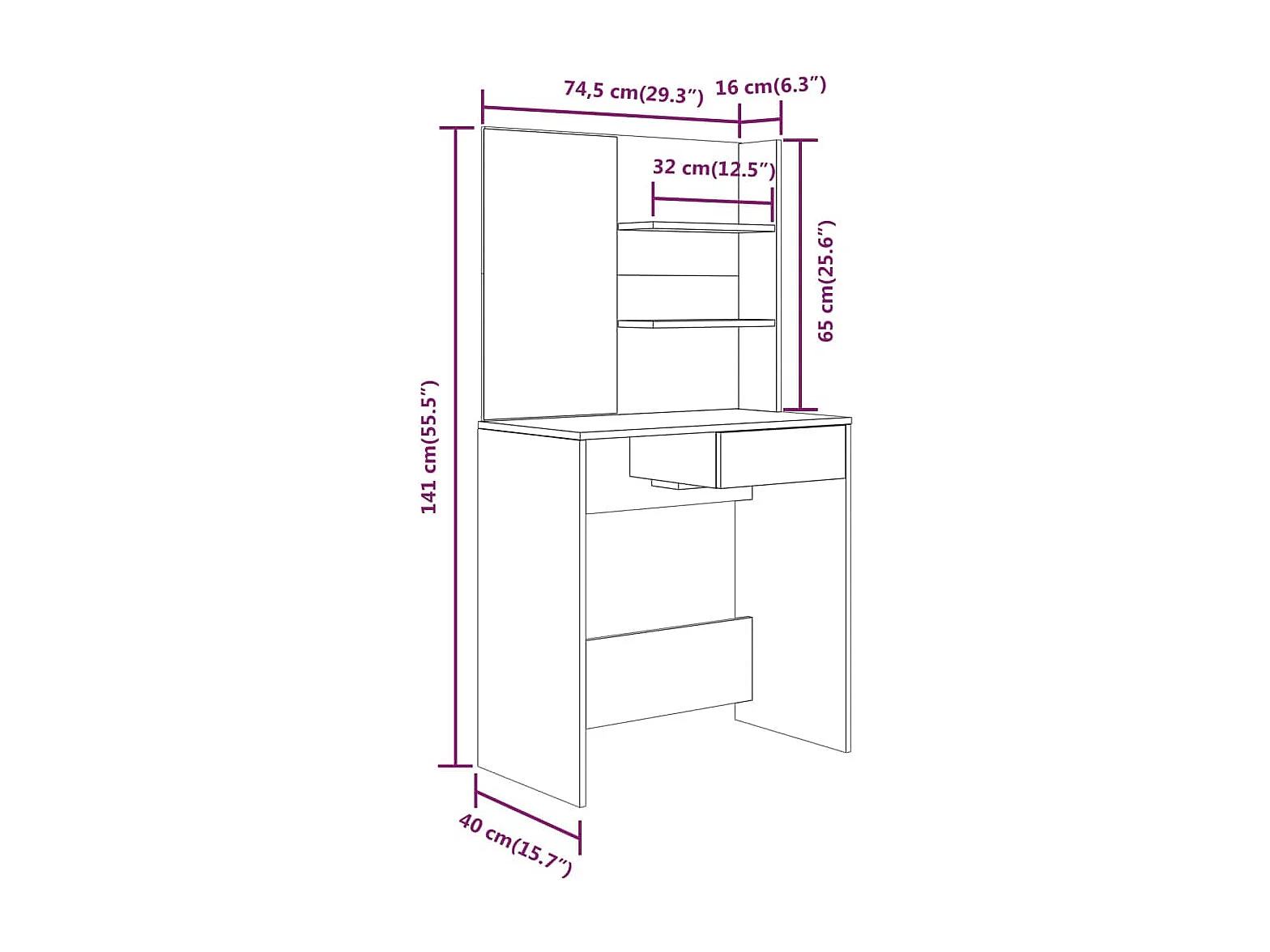 Schminktisch mit Spiegel Betongrau 74,5x40x141 cm
