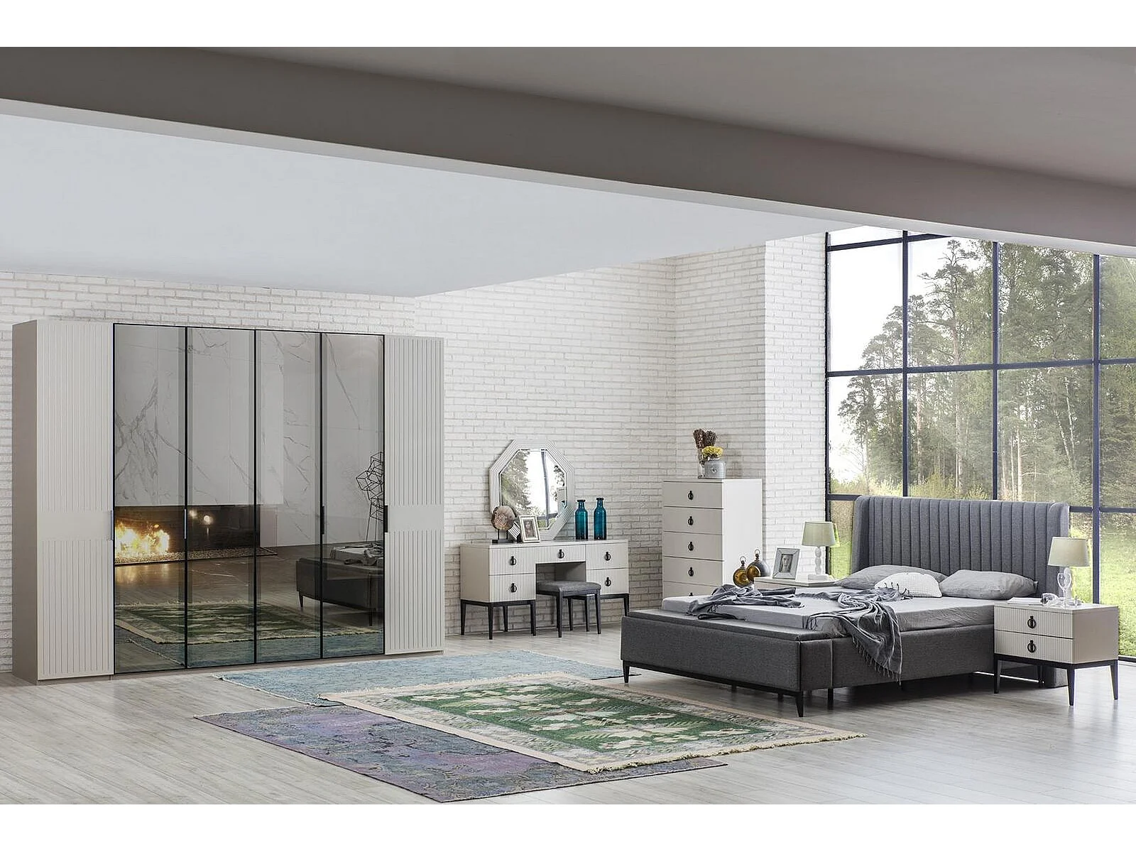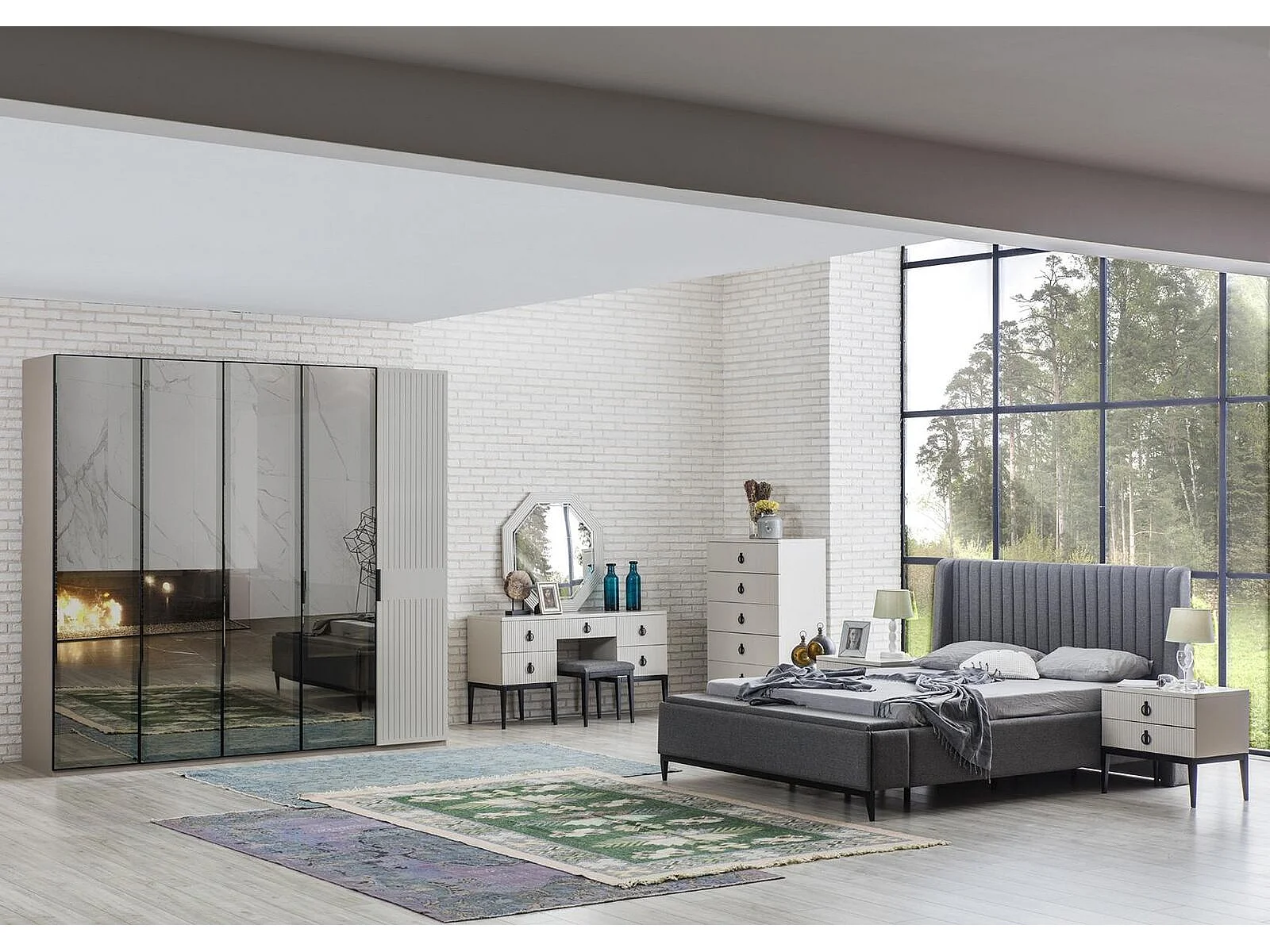 Schminktisch mit Spiegel Grauer Schlafzimmer JV Möbel Design Konsol Hocker Neu