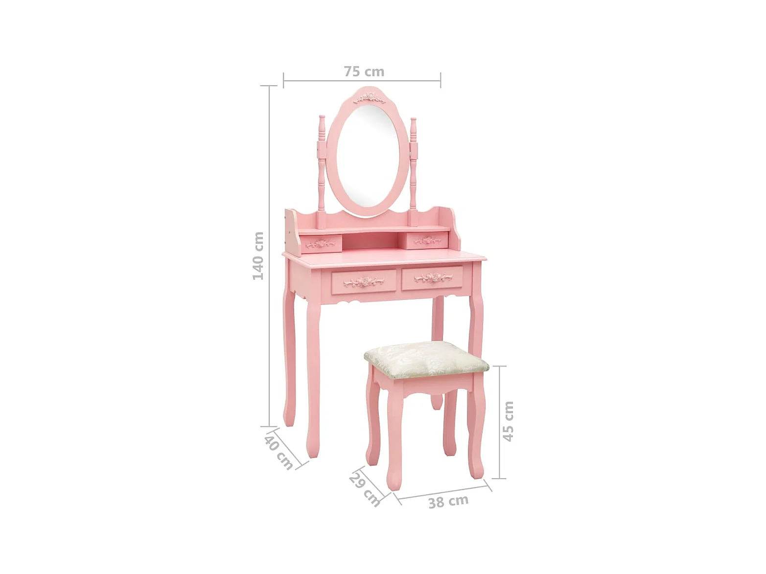 Schminktisch-Set mit Hocker Rosa 75x69x140 cm Paulownia-Holz