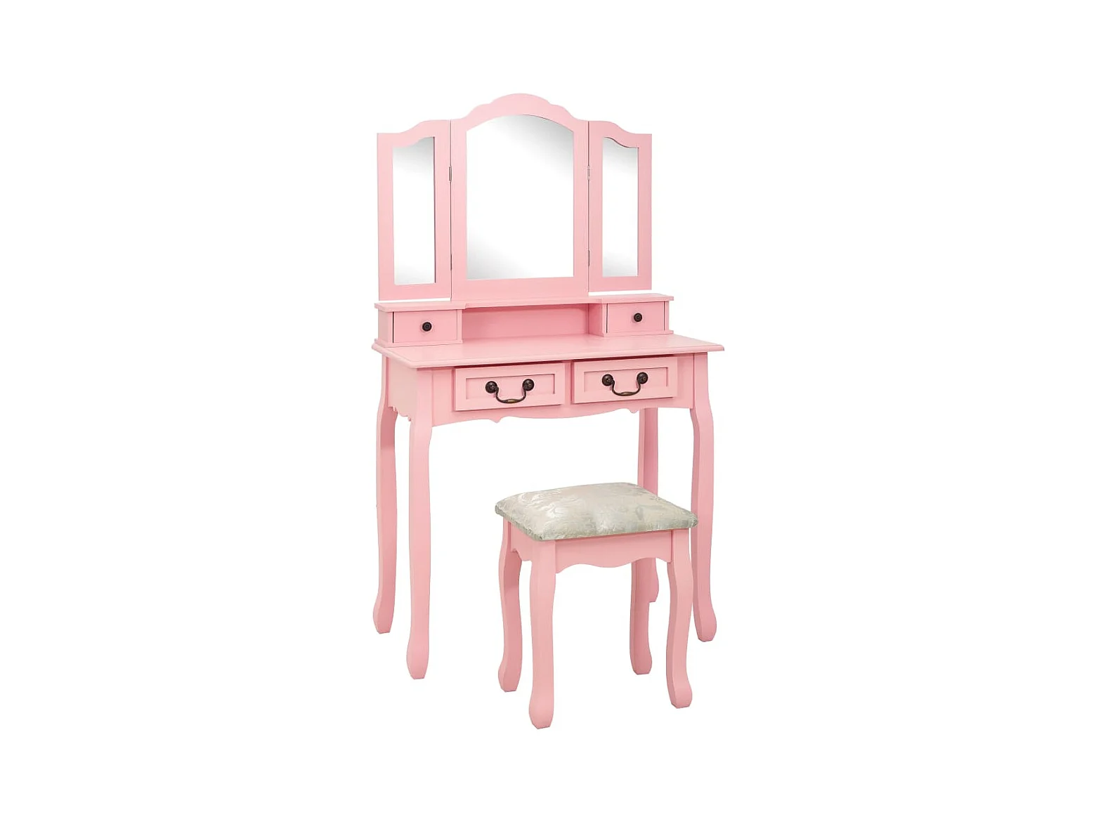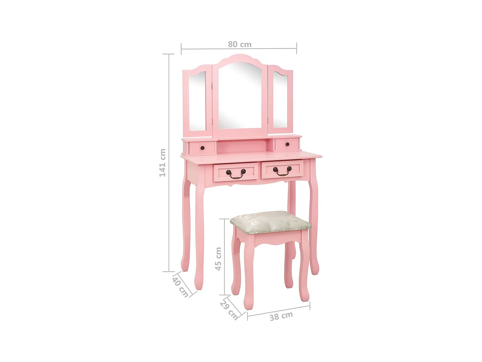 Schminktisch-Set mit Hocker Rosa 80×69×141 cm Paulowniaholz