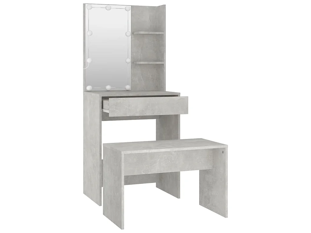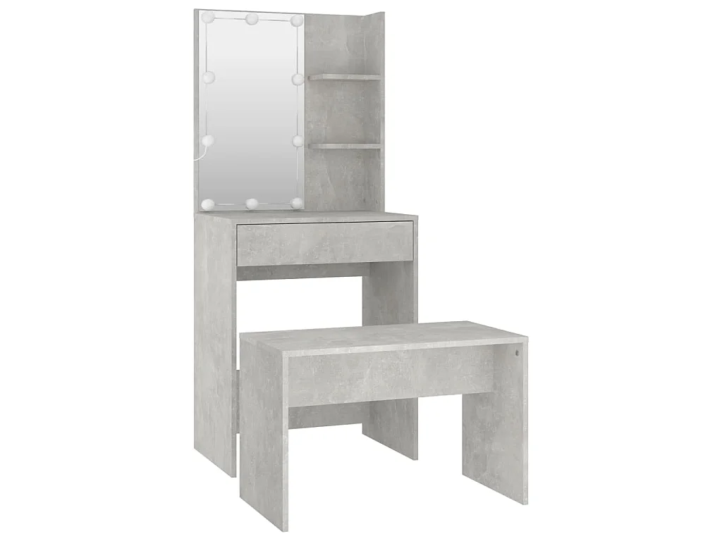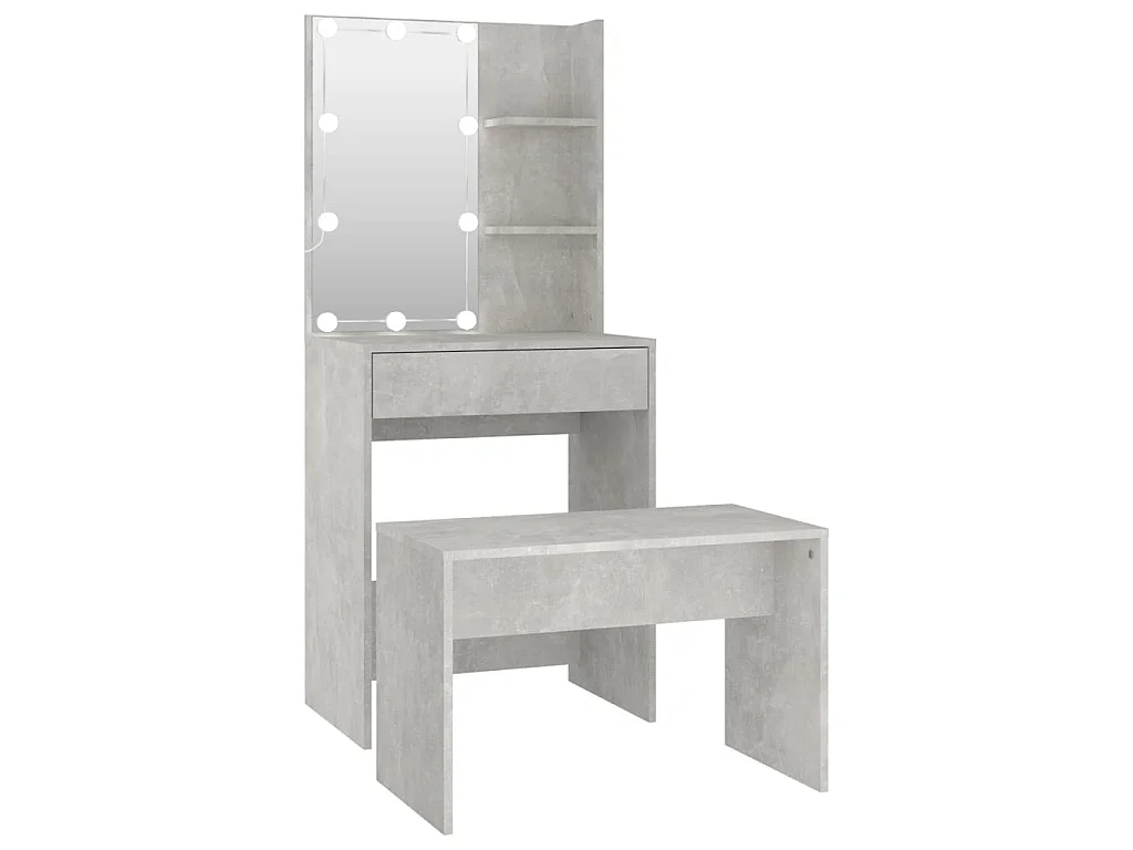 Schminktisch-Set mit LED Betongrau Holzwerkstoff