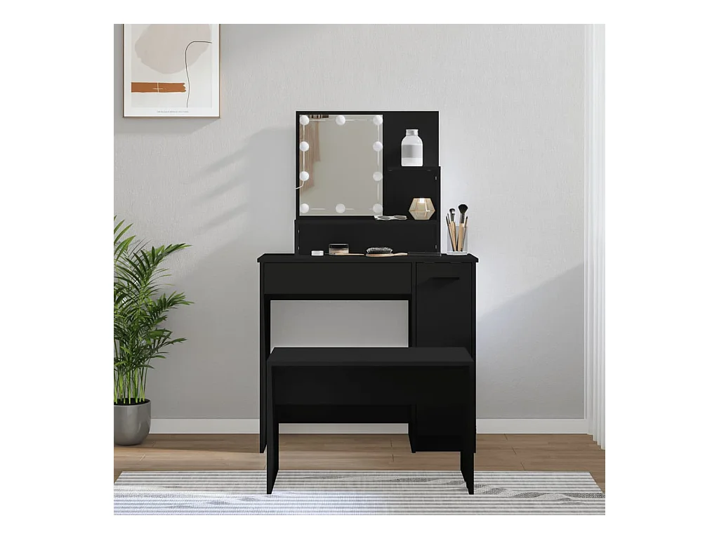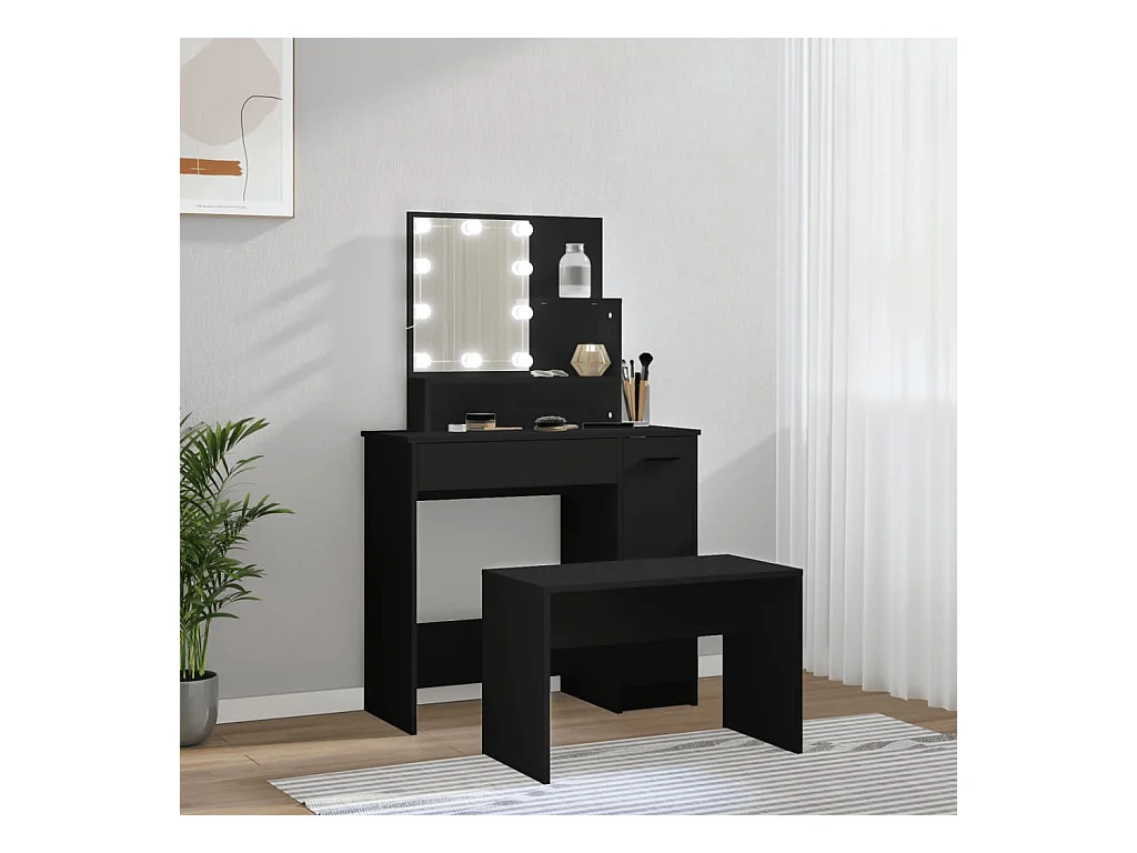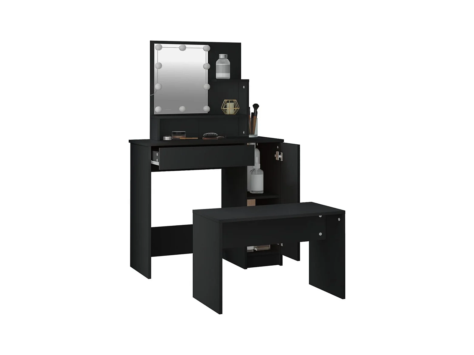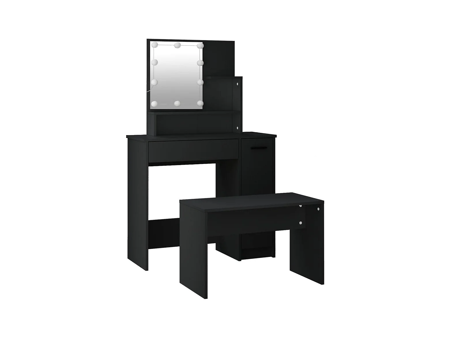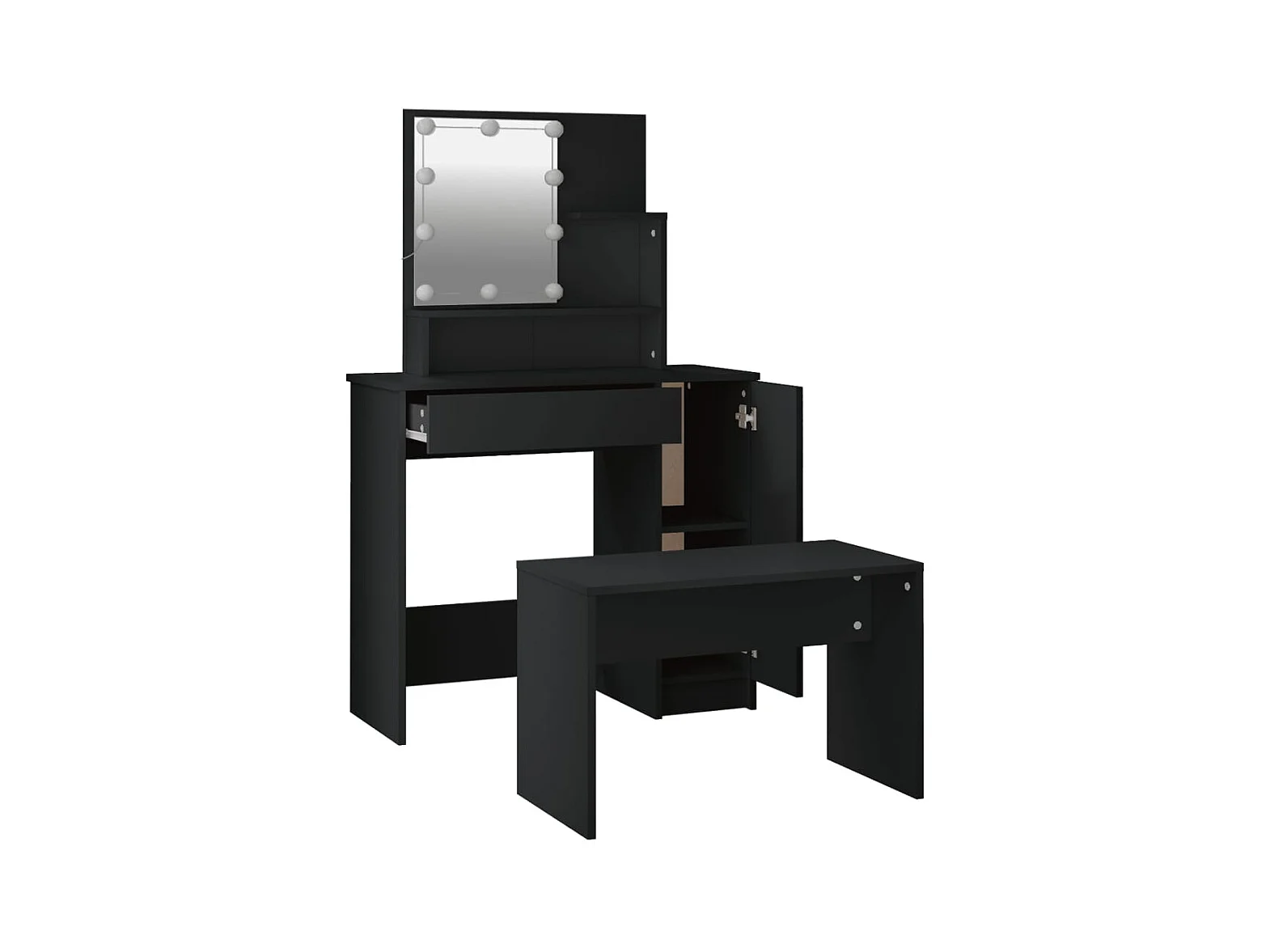 Schminktisch-Set mit LED Schwarz Holzwerkstoff
