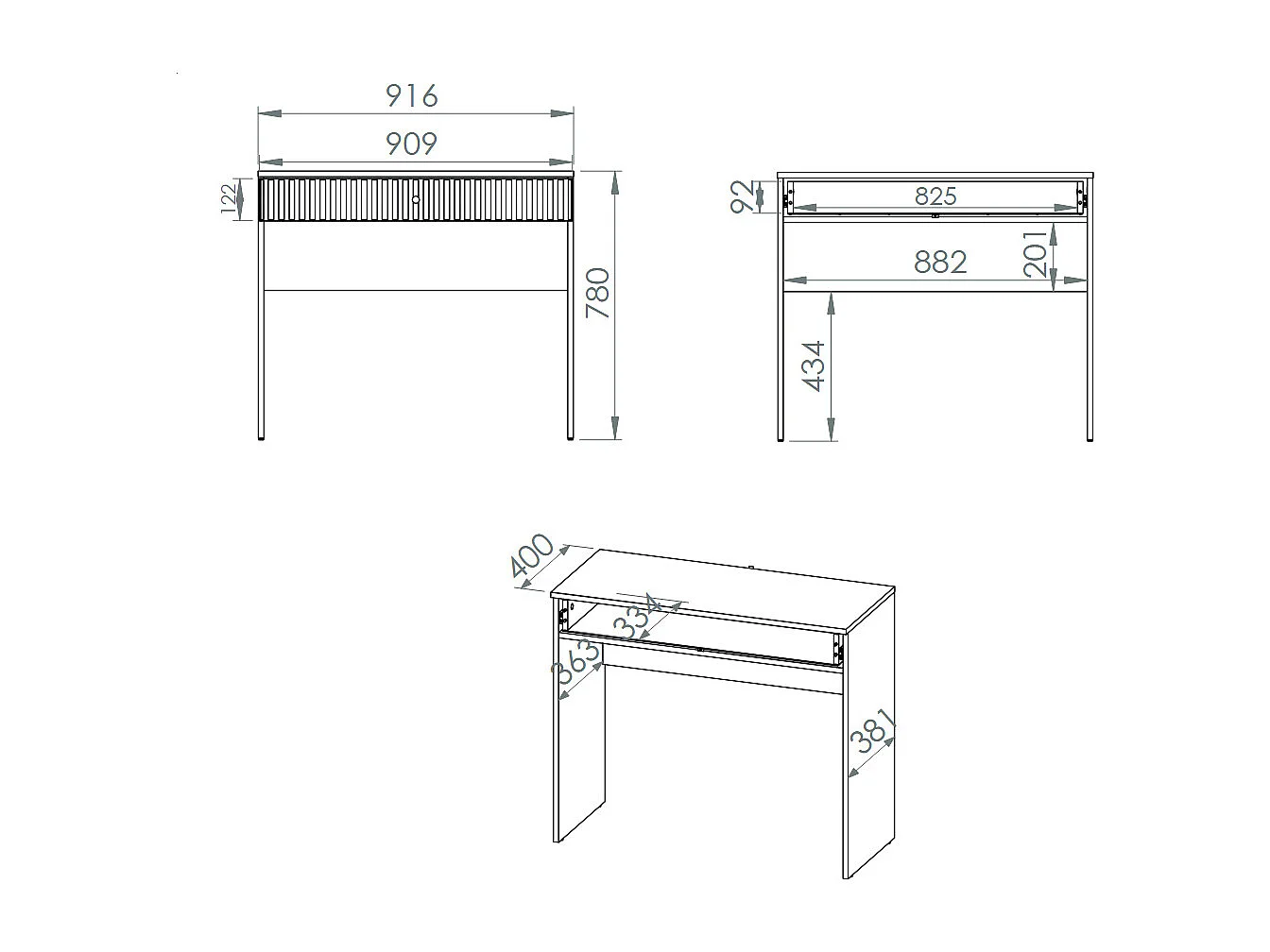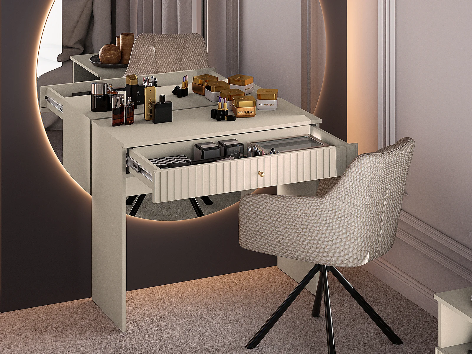 SCHMINKTISCH Sophie kaschmir matt 92 / 40 / 78cm