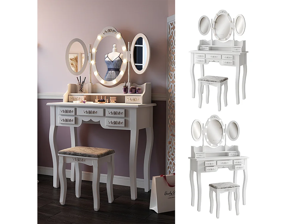 Schminktisch weiß 90x40x147 diana