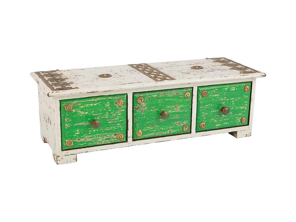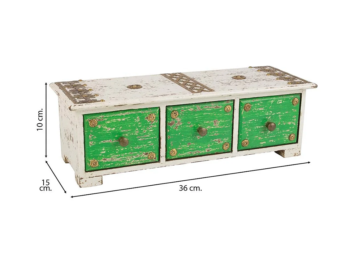 Schmuckschatulle aus Holz mit weißen Metalldetails, 36x15x10H cm