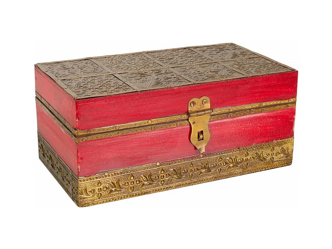 Schmuckschatulle aus Holz und rotem Metall, 20x11x9h cm