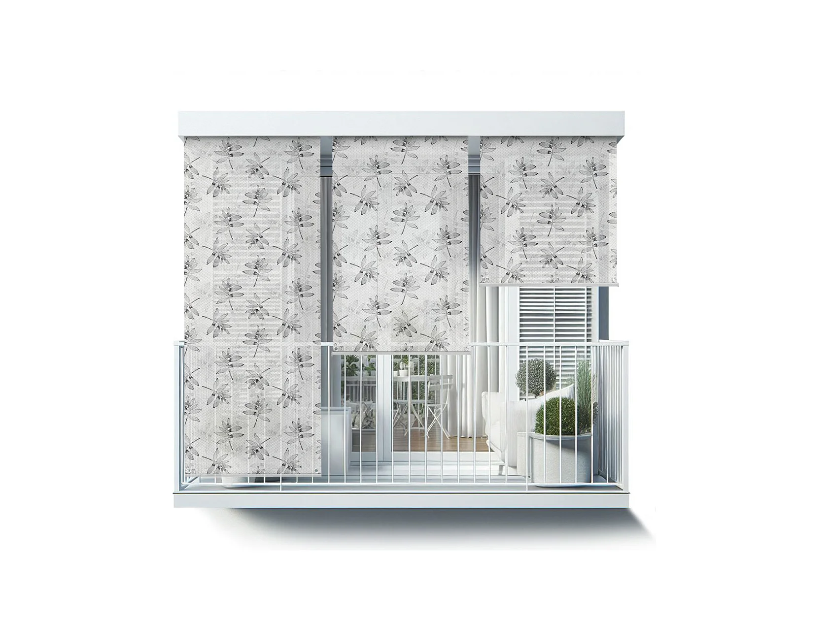 Schönes Außenrollo – 120 x 180 cm – graue Blätter. Balkonvorhang, Balkonrollos, Sonnenschutzvorhang