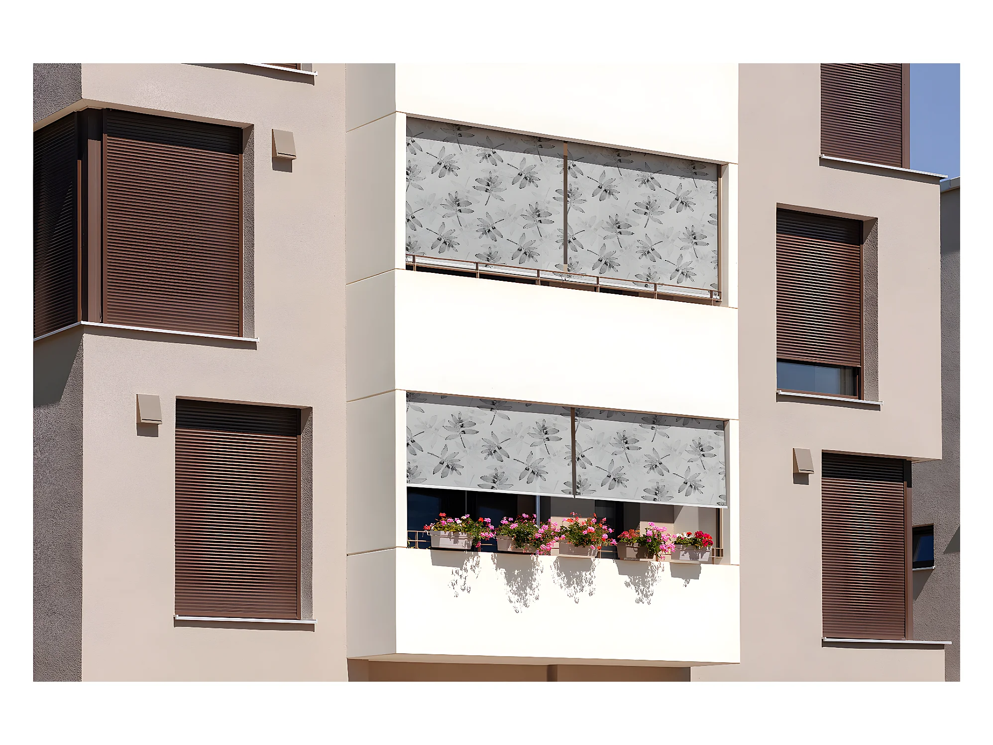 Schönes Außenrollo – 140 x 290 cm – graue Blätter. Balkonvorhang, Balkonrollos, Sonnenschutzvorhang