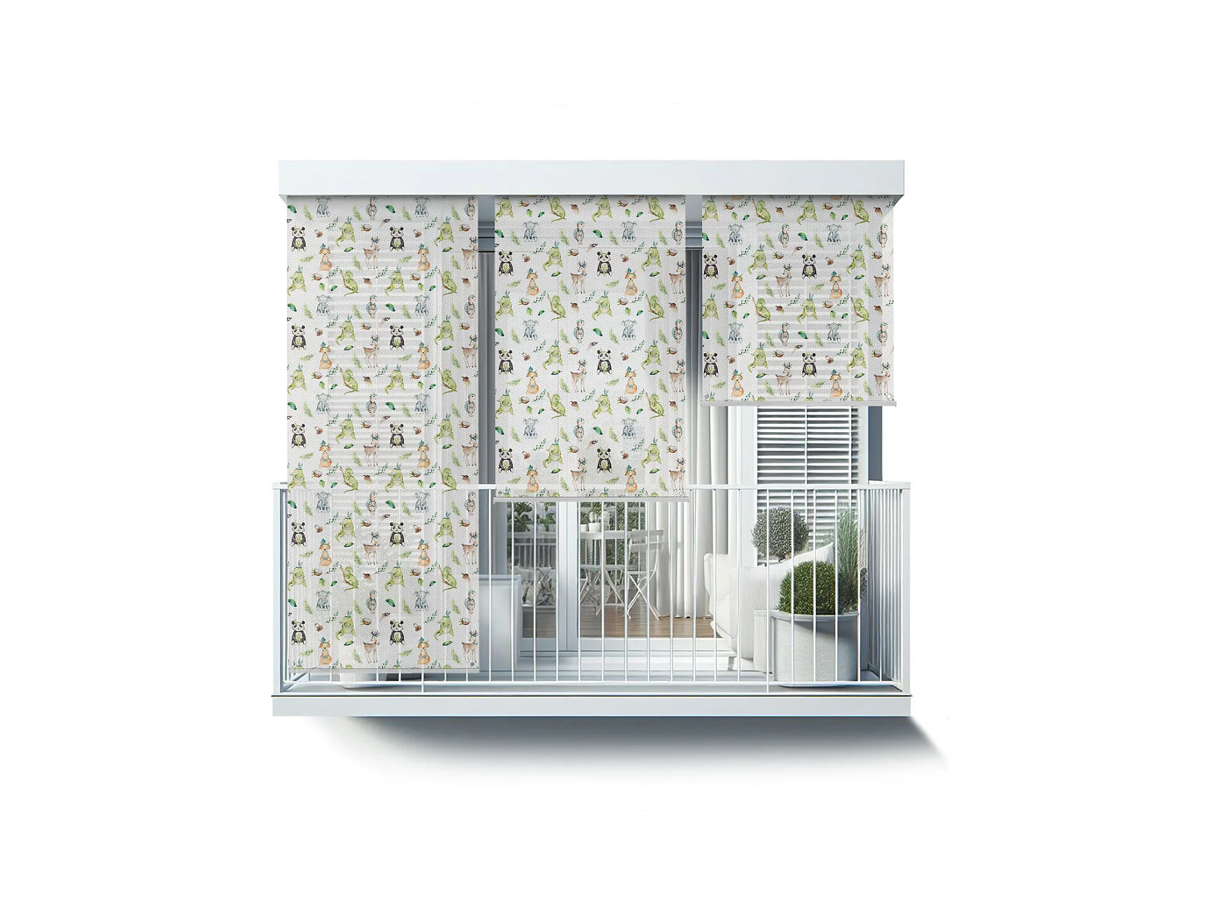 Schönes Rollo für den Außenbereich – 140 x 290 cm – Tiere im Wald. Balkonvorhang, Balkonjalousien, Sonnenschutzvorhang
