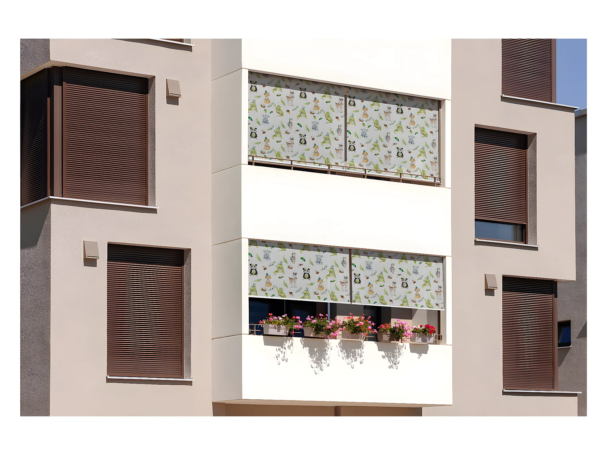 Schönes Rollo für den Außenbereich – 50 x 290 cm – Tiere im Wald. Balkonvorhang, Balkonjalousien, Sonnenschutzvorhang