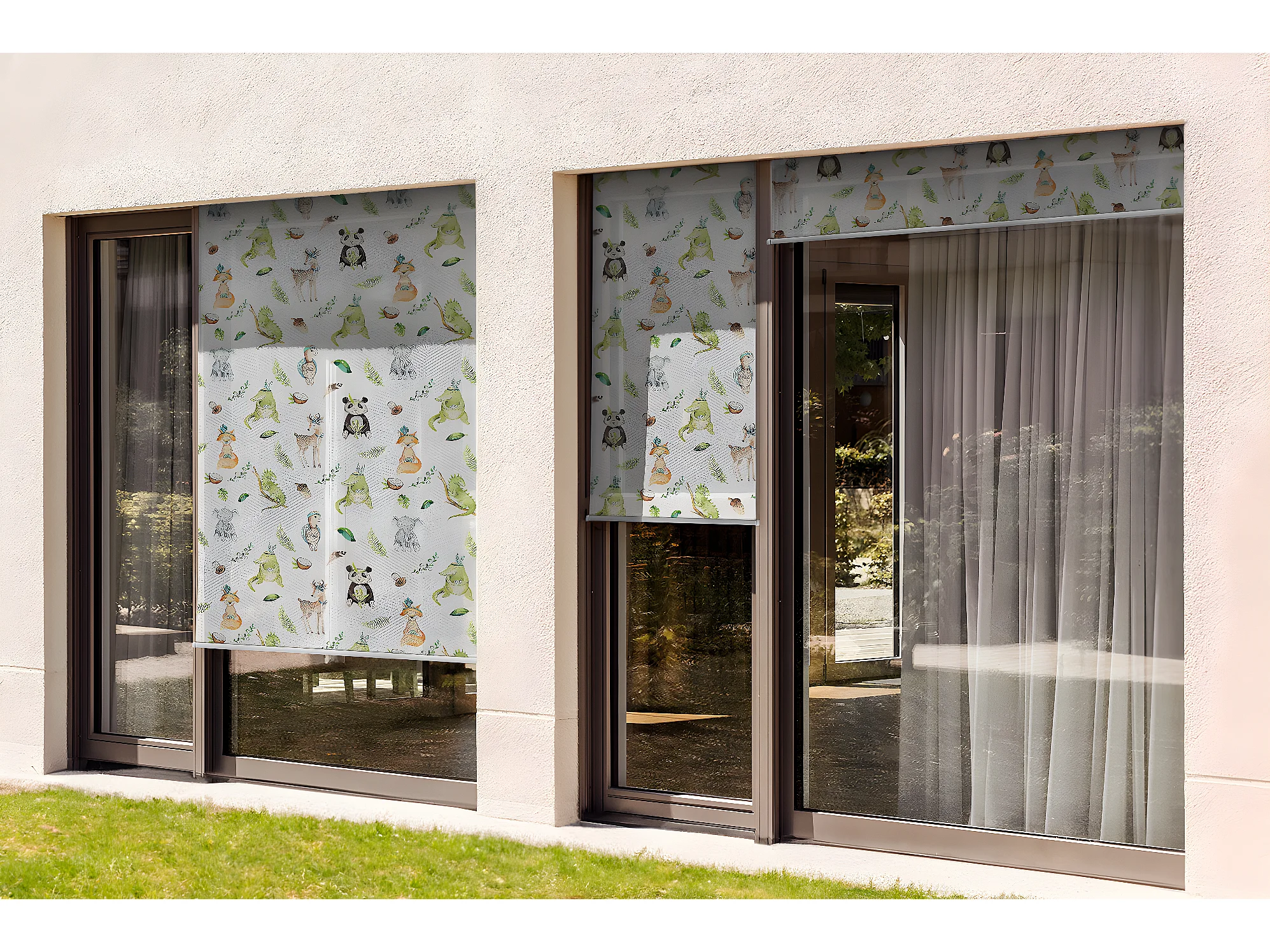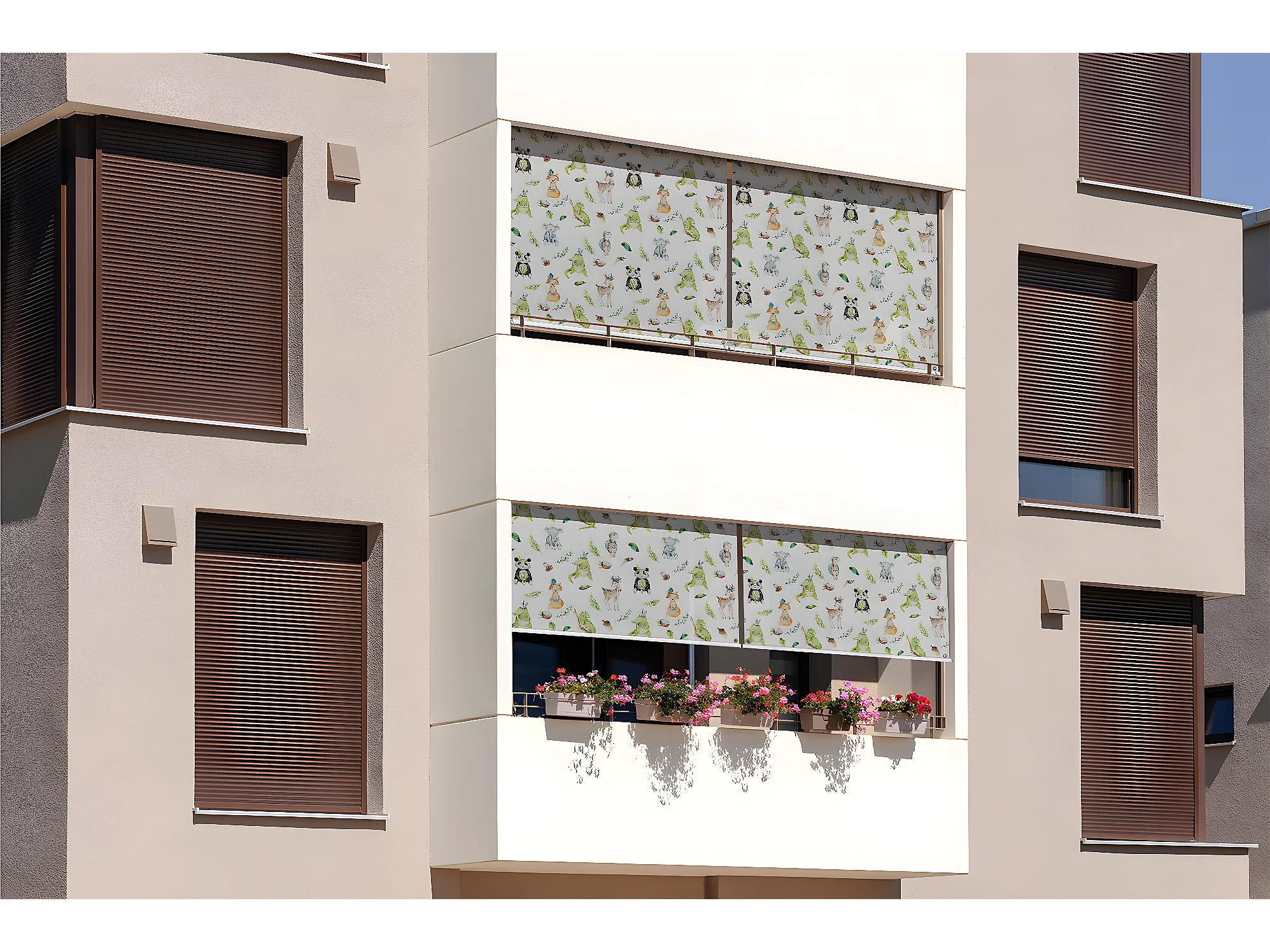 Schönes Rollo für den Außenbereich – 80 x 180 cm – Tiere im Wald. Balkonvorhang, Balkonjalousien, Sonnenschutzvorhang