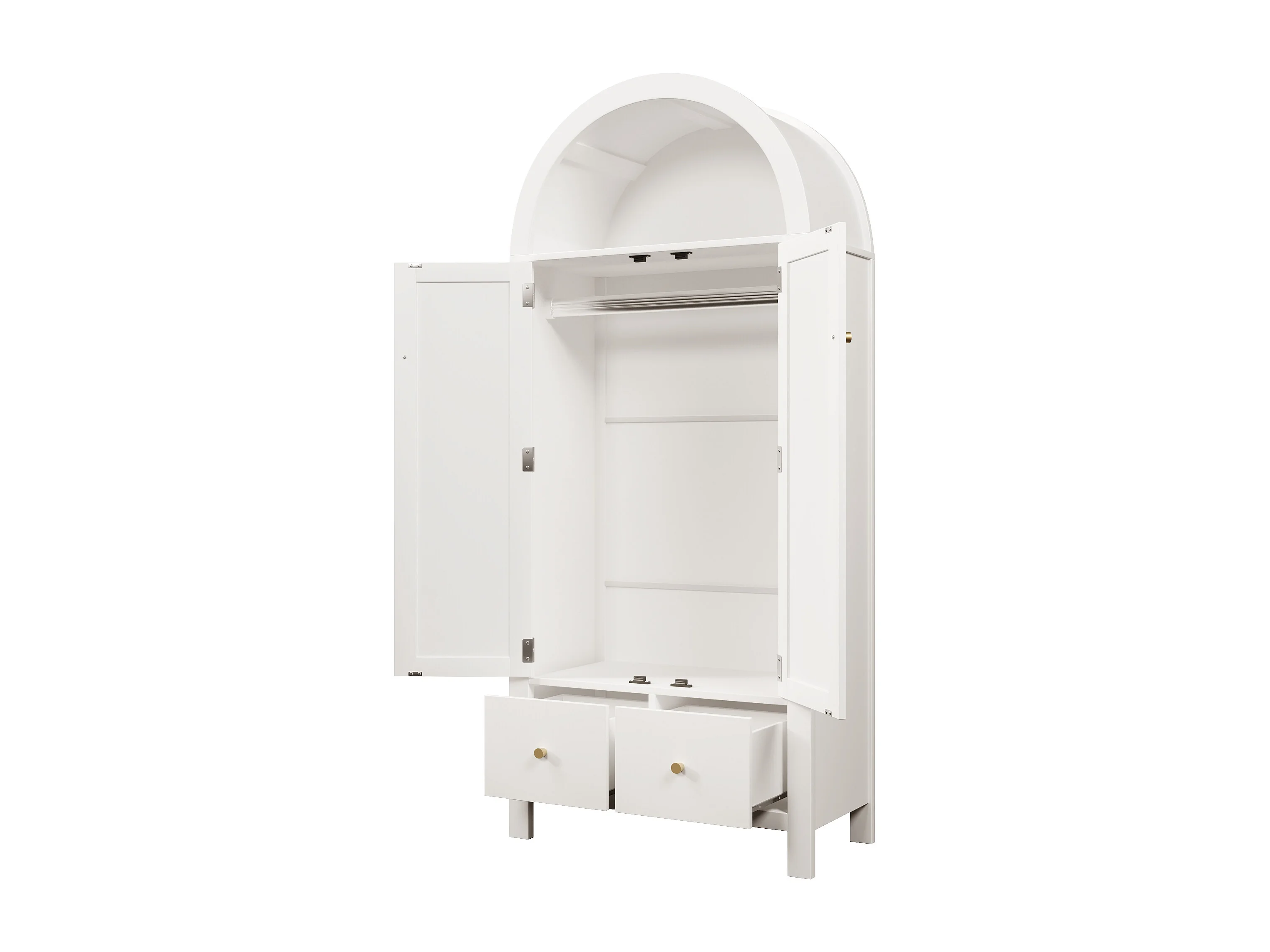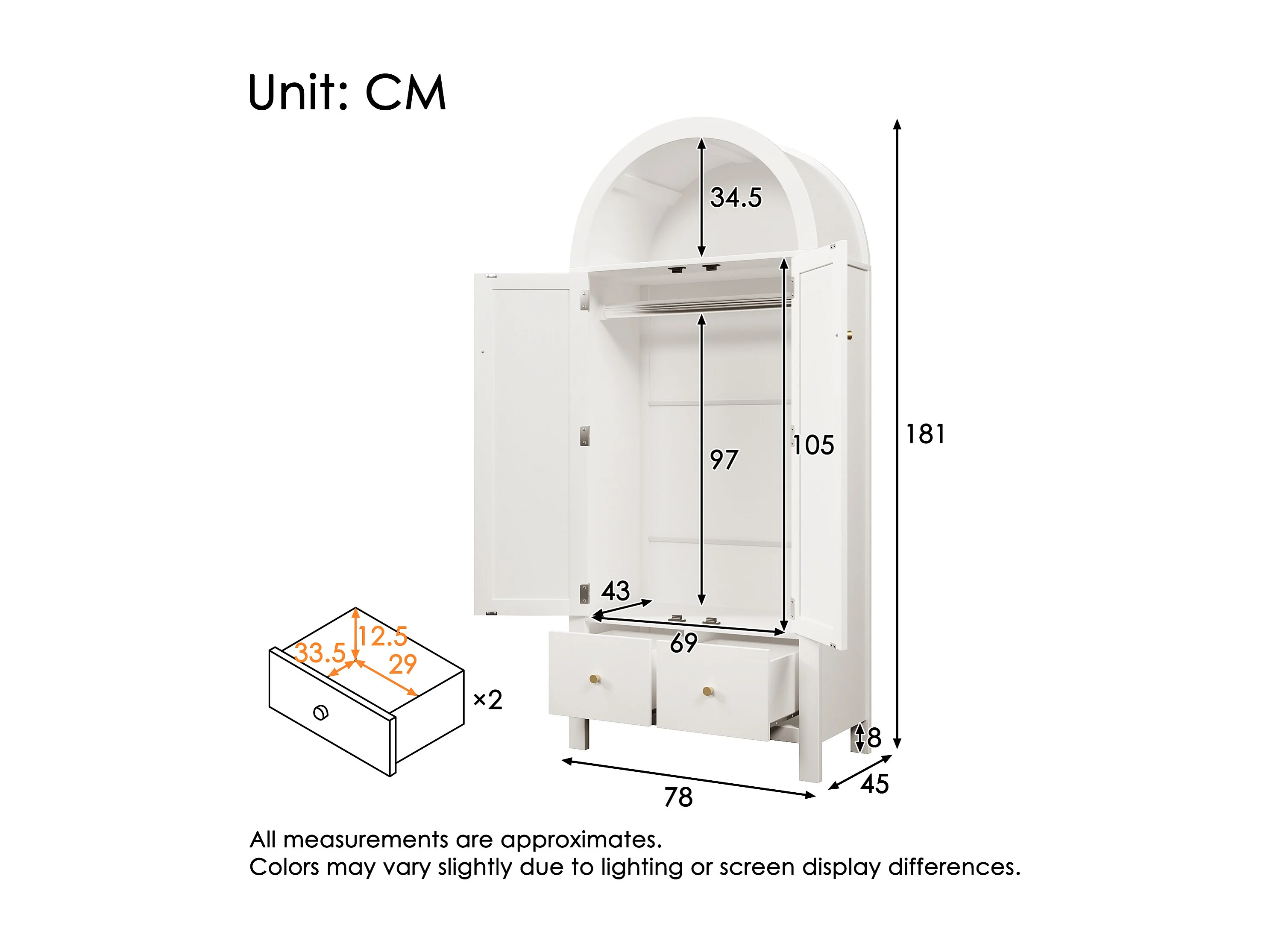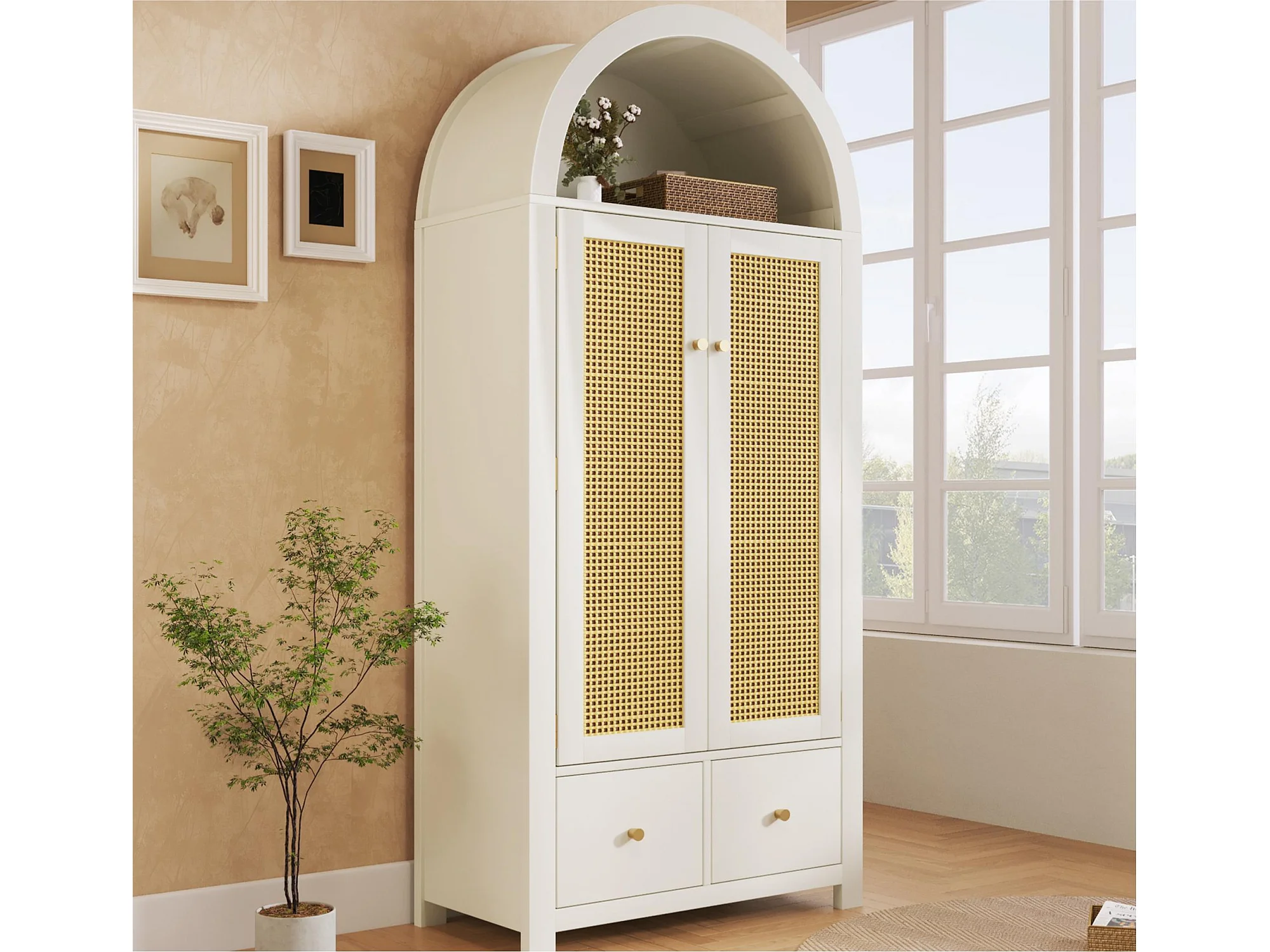 Schrank 78x45x181cm - Offene Regale und Kleiderstangen - mit 2 Rattantüren und 2 Schubladen - rustikaler Stil - weiß