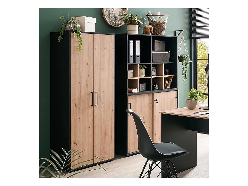 Schrank Büro Büroschrank mit Holzwerkstoff Türen und Metallgriffen