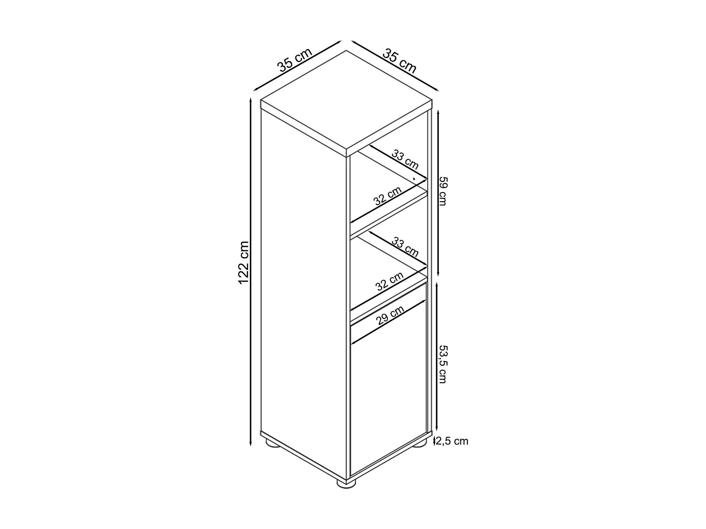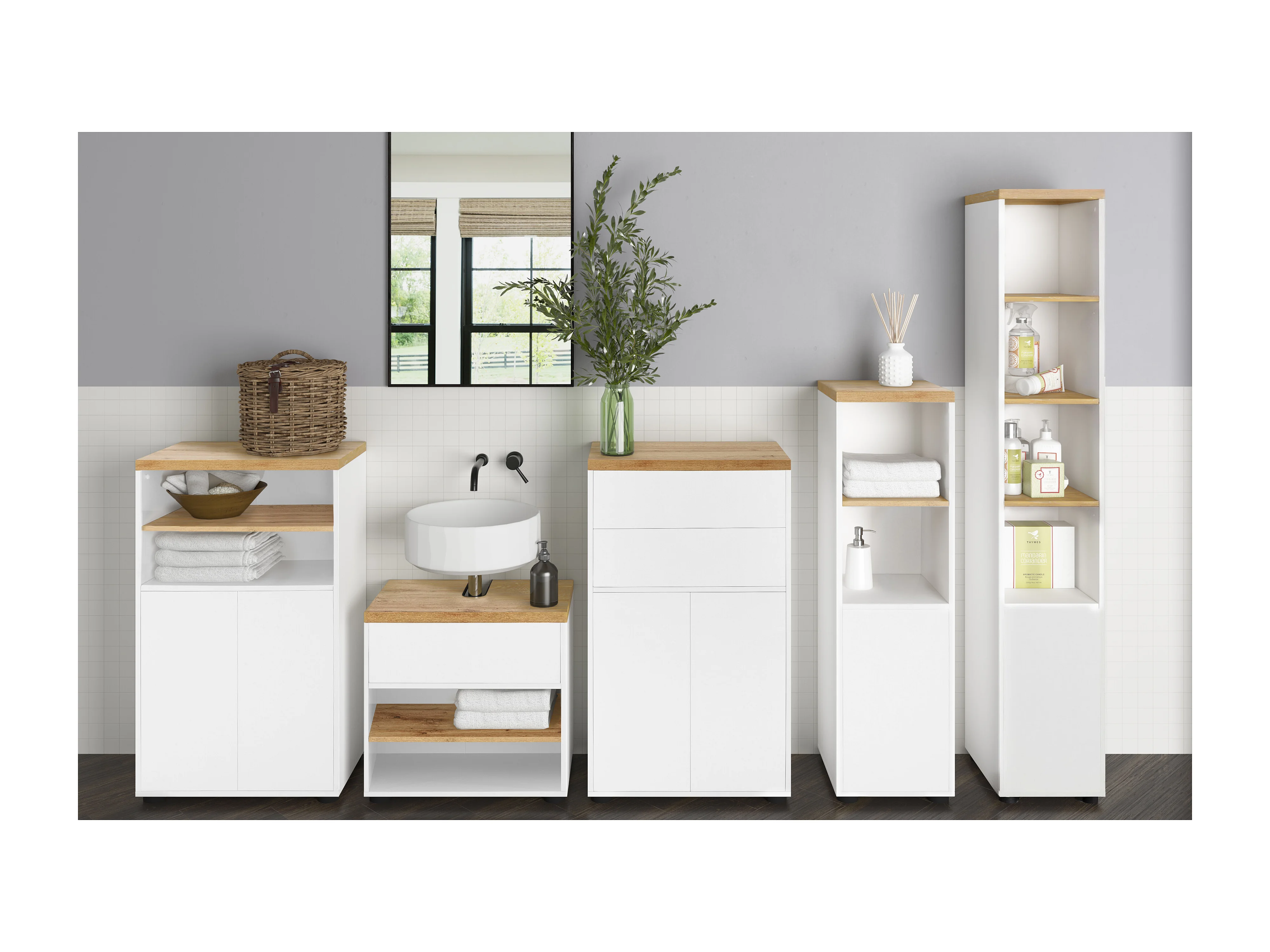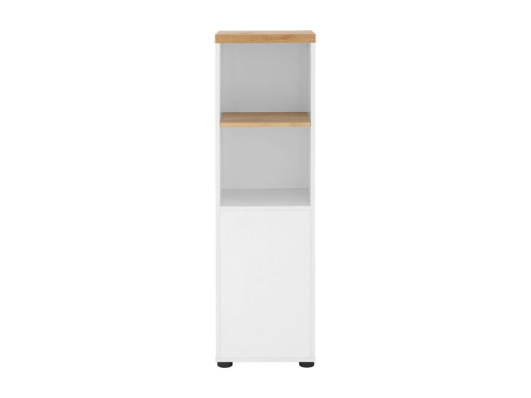 Schrank mit 1 Tür und 1 Regal aus MDF weiß und Eiche