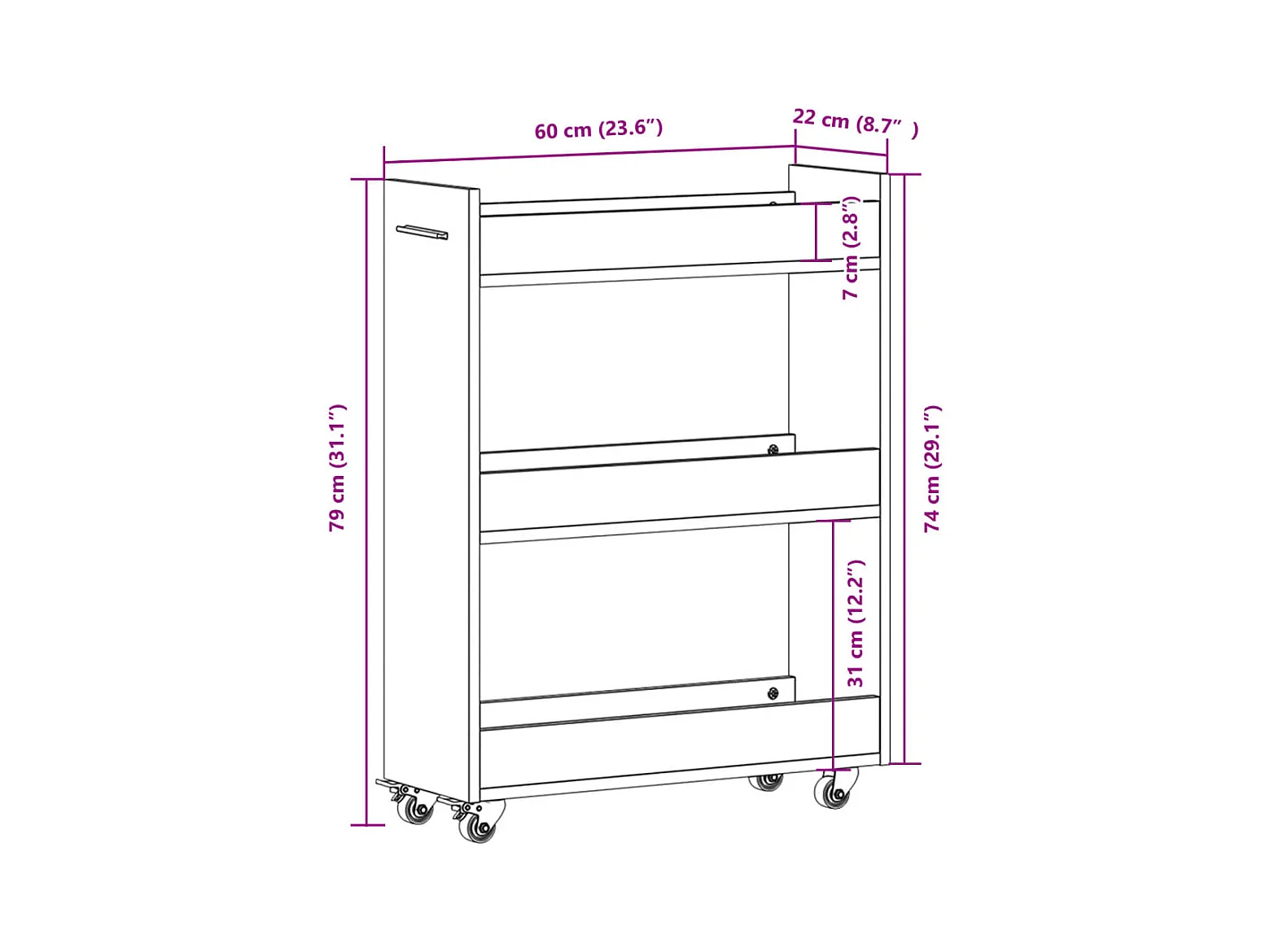 Schrank mit Rollen Weiß 60x22x79 cm Holzwerkstoff
