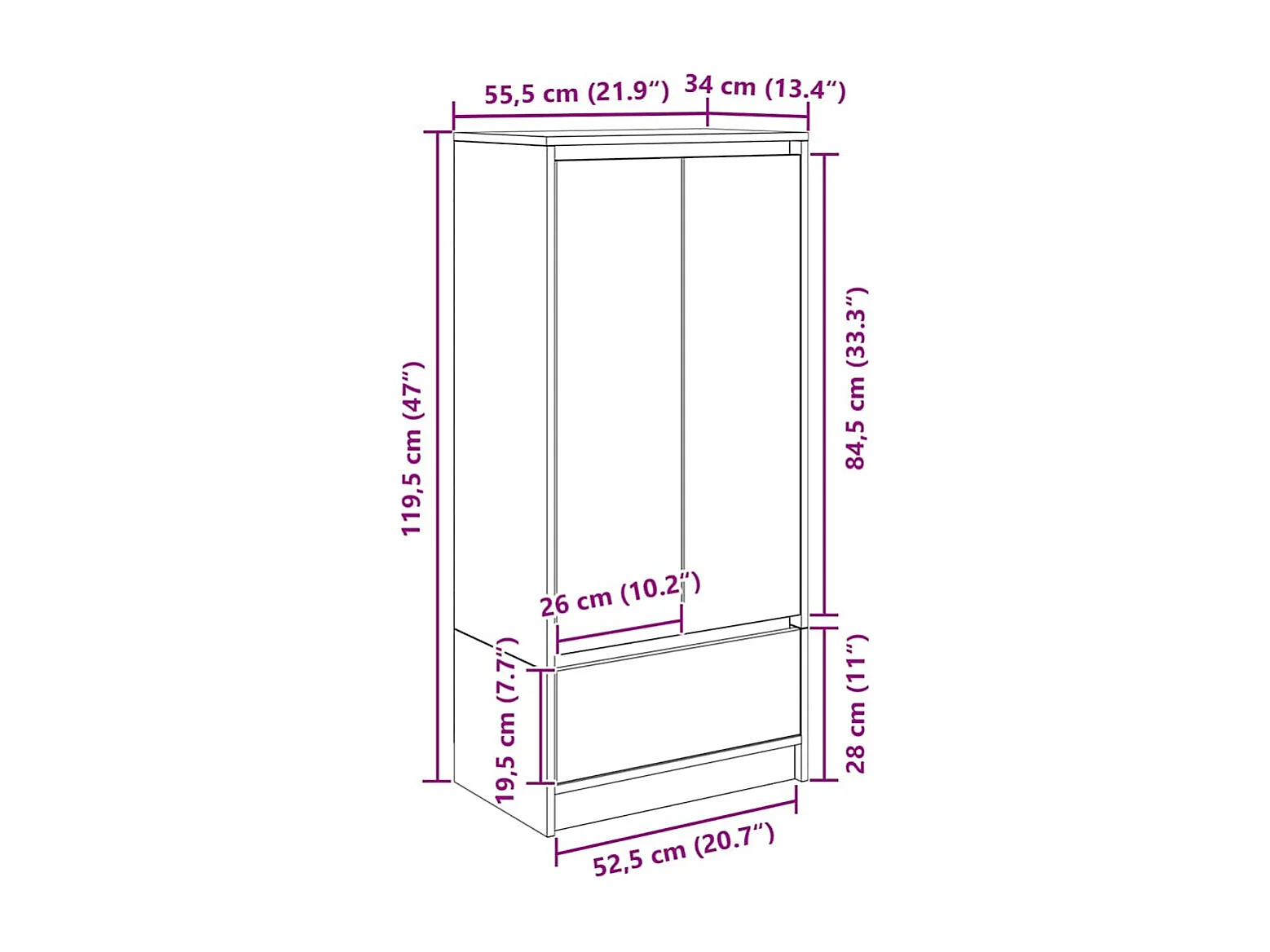 Schrank mit Schublade Weiß 55,5x34x119,5 cm Holzwerkstoff