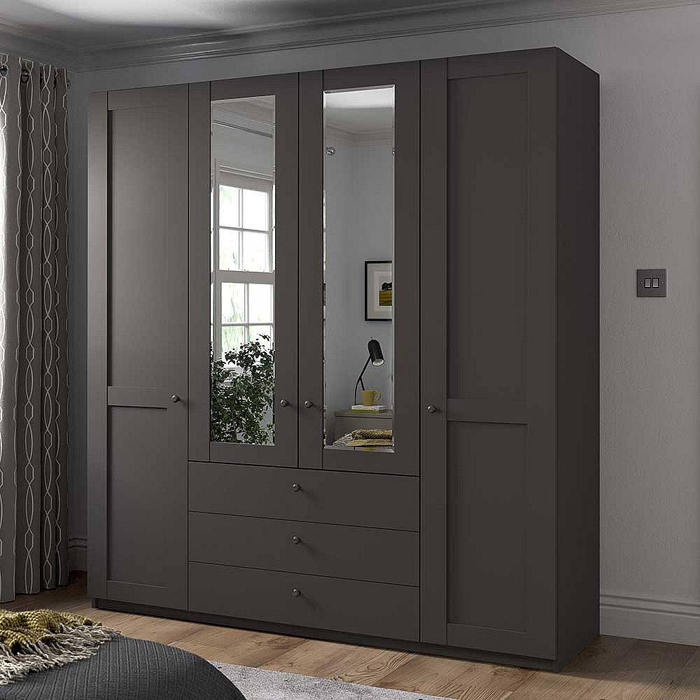 Schrank mit Spiegeltüren dunkelgrau 200 cm breit 216 cm hoch