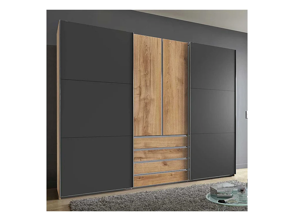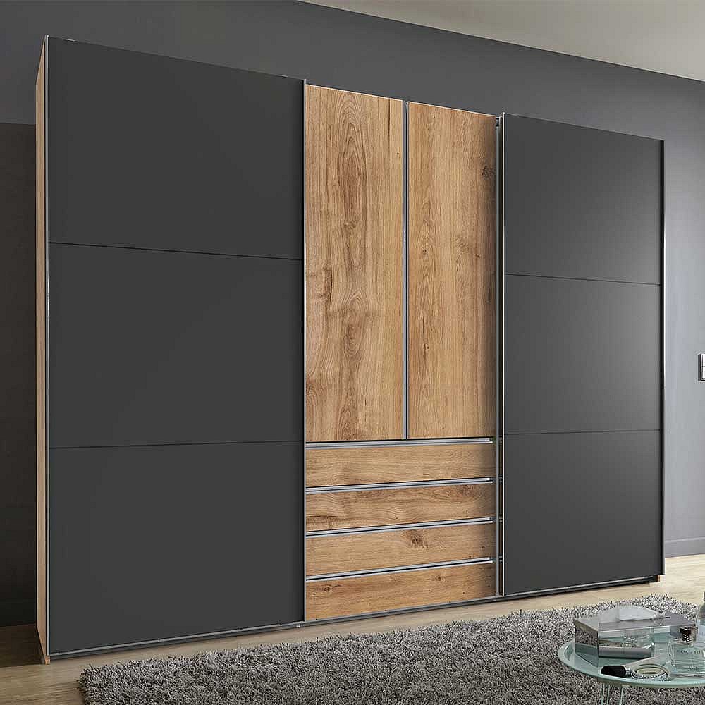 Schrank Schlafzimmer 300 cm mit vier Schubladen Dreh- und Schiebetüren