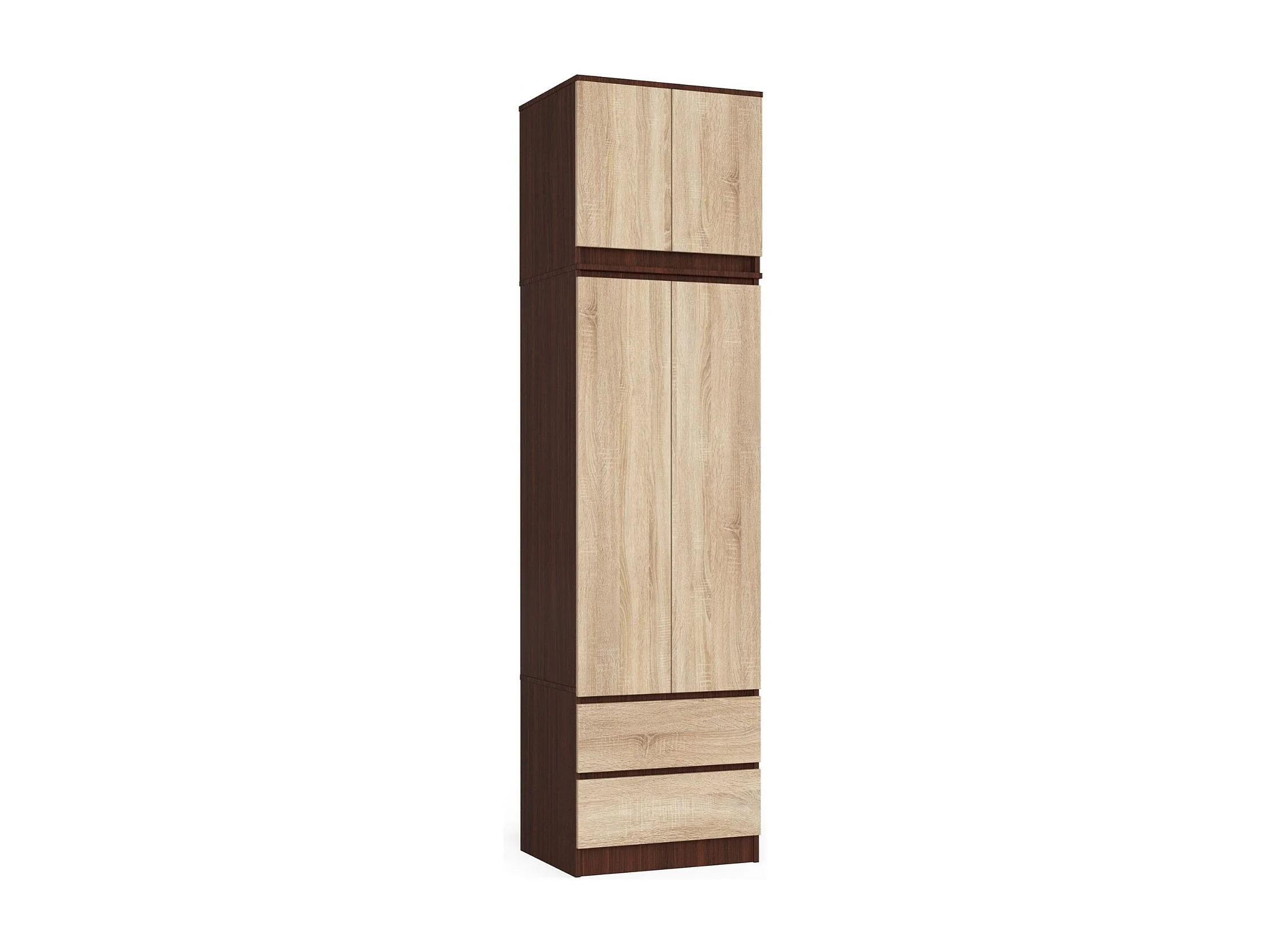 Schrankaufsatz für Kleiderschrank AKORD S60 Wenge 60 cm 2 Türen 2 Ebenen Front Sonoma-Eiche B60 x H55 x T51 cm