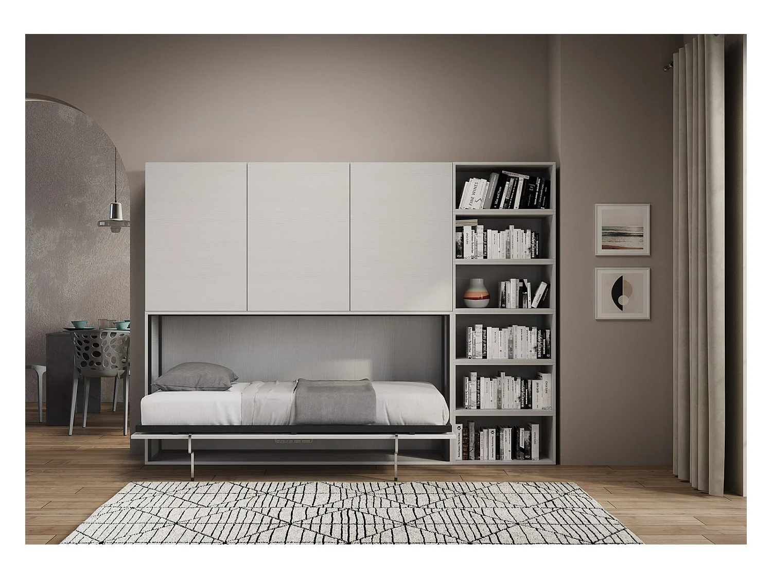 Schrankbett Kando Eizelbett horizontal mit Matratze Komp. G Esche weiß