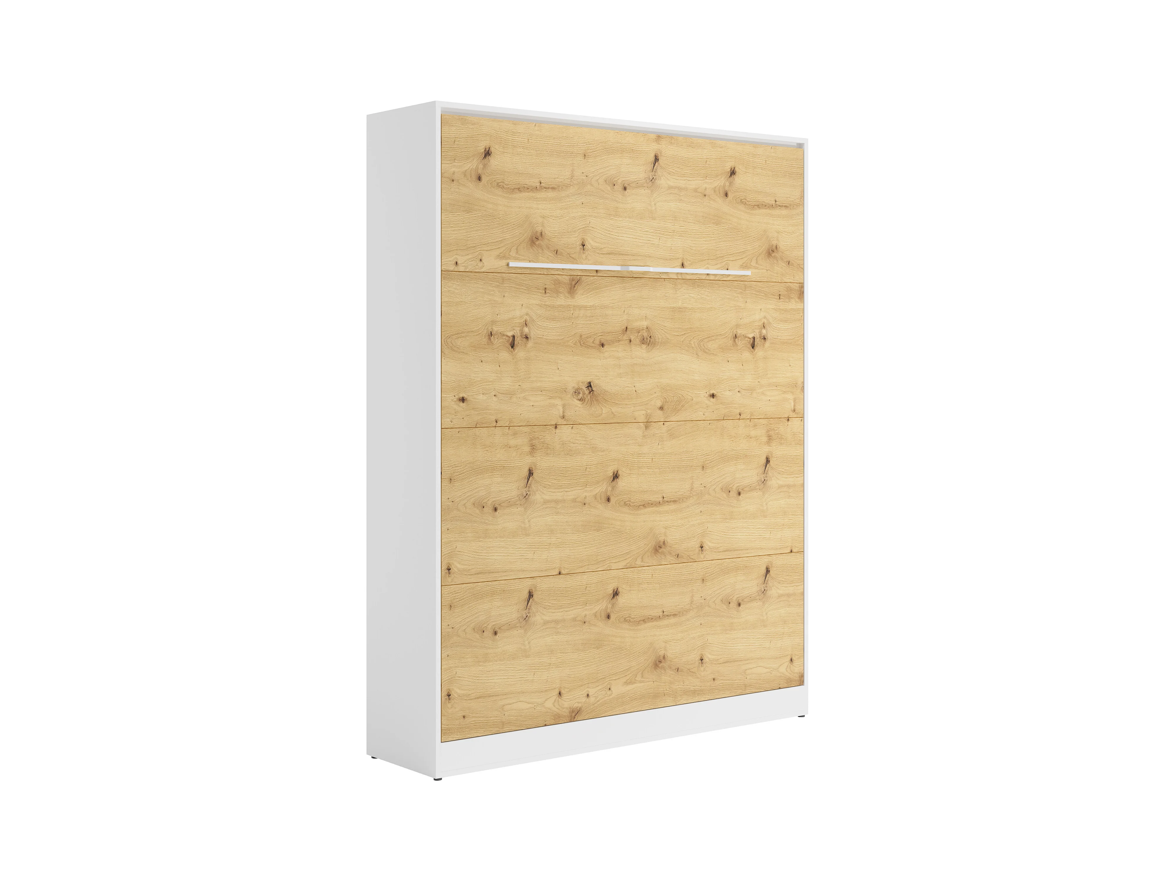 Schrankbett + Matratze - 160 x 200 cm - Manuelle vertikale Öffnung - Mit LED-Beleuchtung - Weiß & Holzfarben - RAPILI