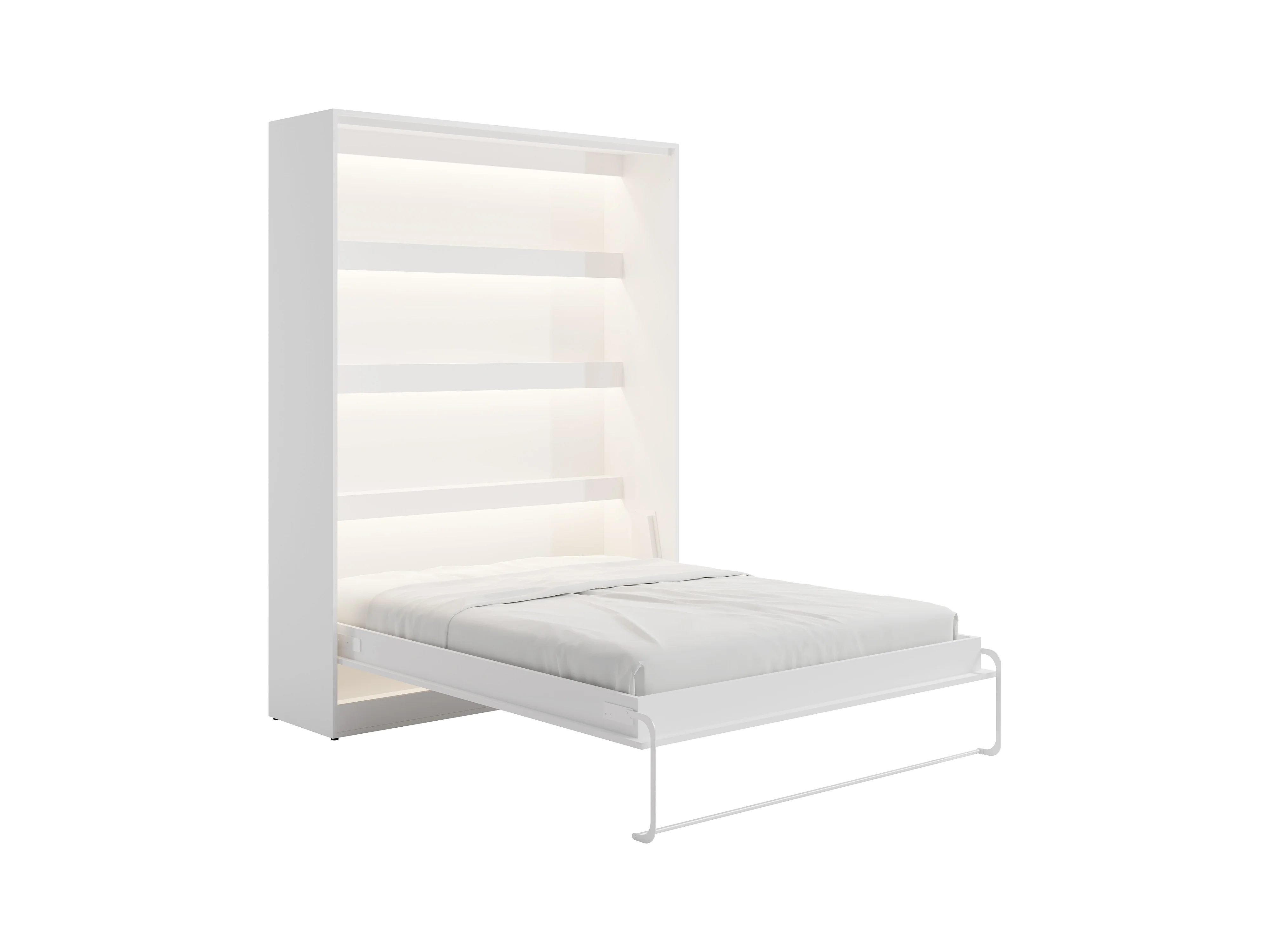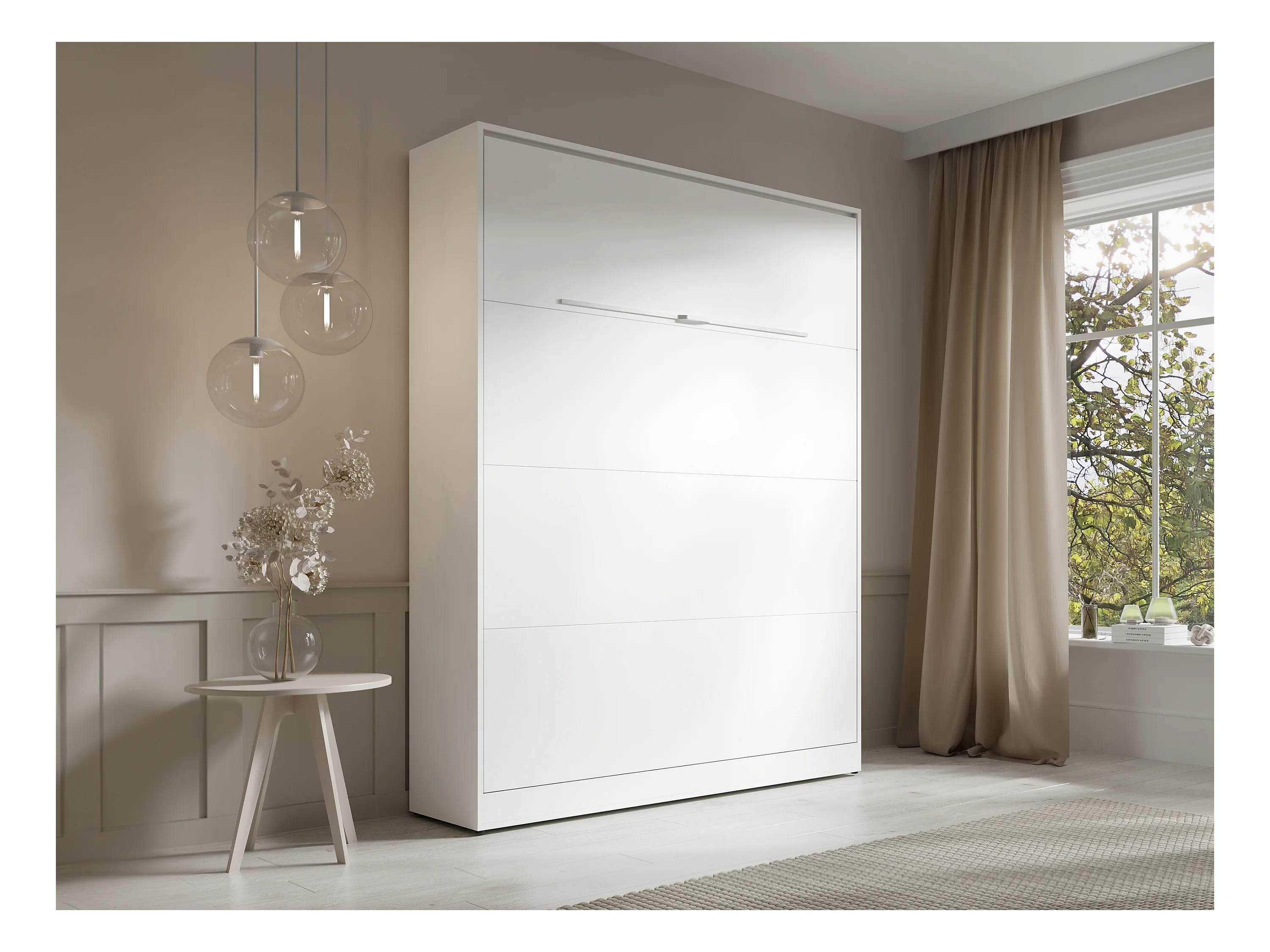 Schrankbett + Matratze - 160 x 200 cm - Manuelle vertikale Öffnung - Mit LED-Beleuchtung - Weiß - RAPILI