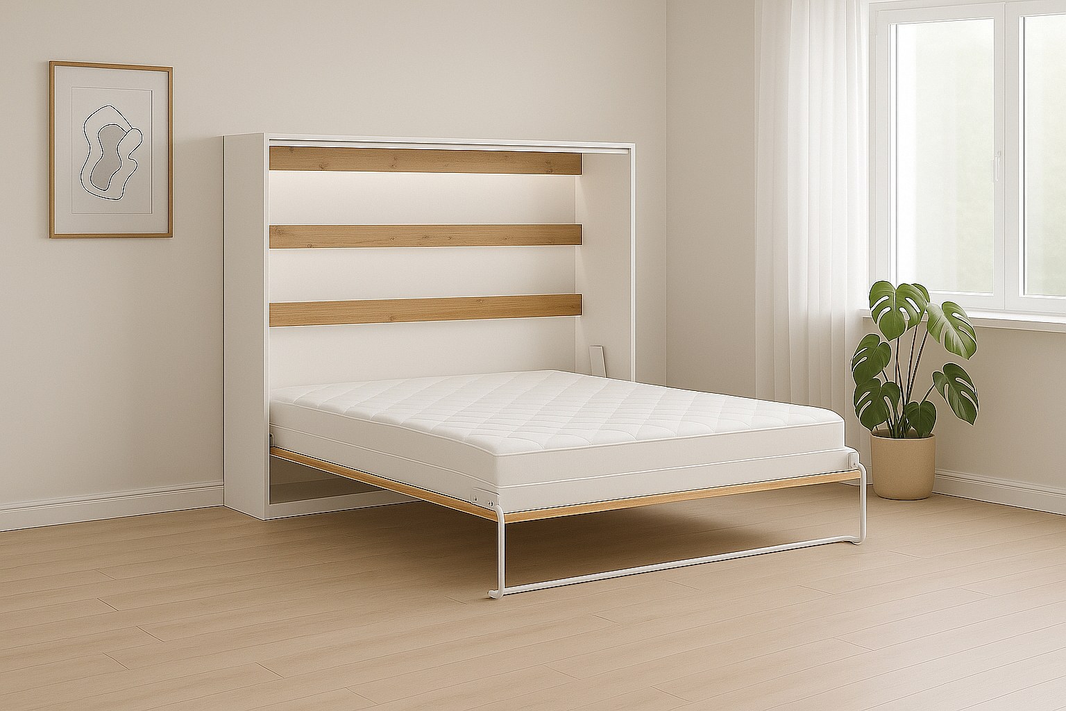 Schrankbett Perfekt 160x200 ein horizontales , das Design und Funktionalität vereint mit Matratze Eiche + Schwarz