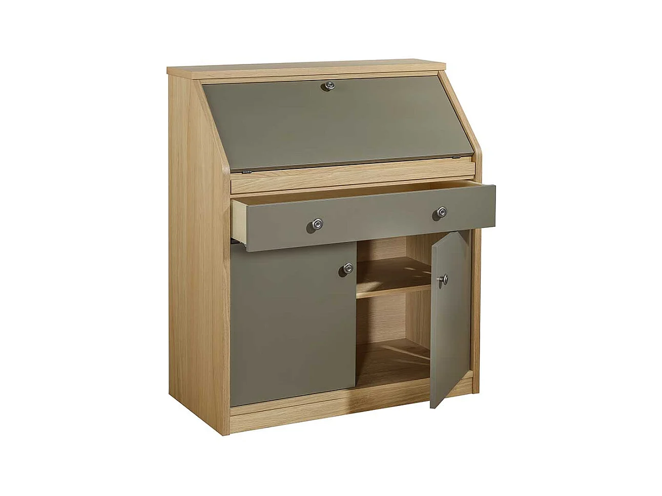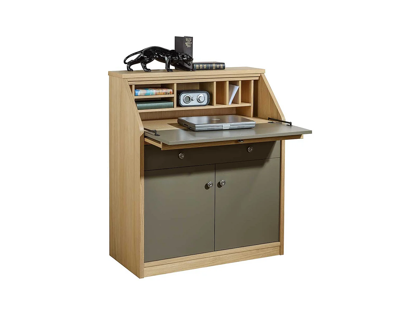 Schreibsekretär in Eichefarben und Beigegrau Made in Germany