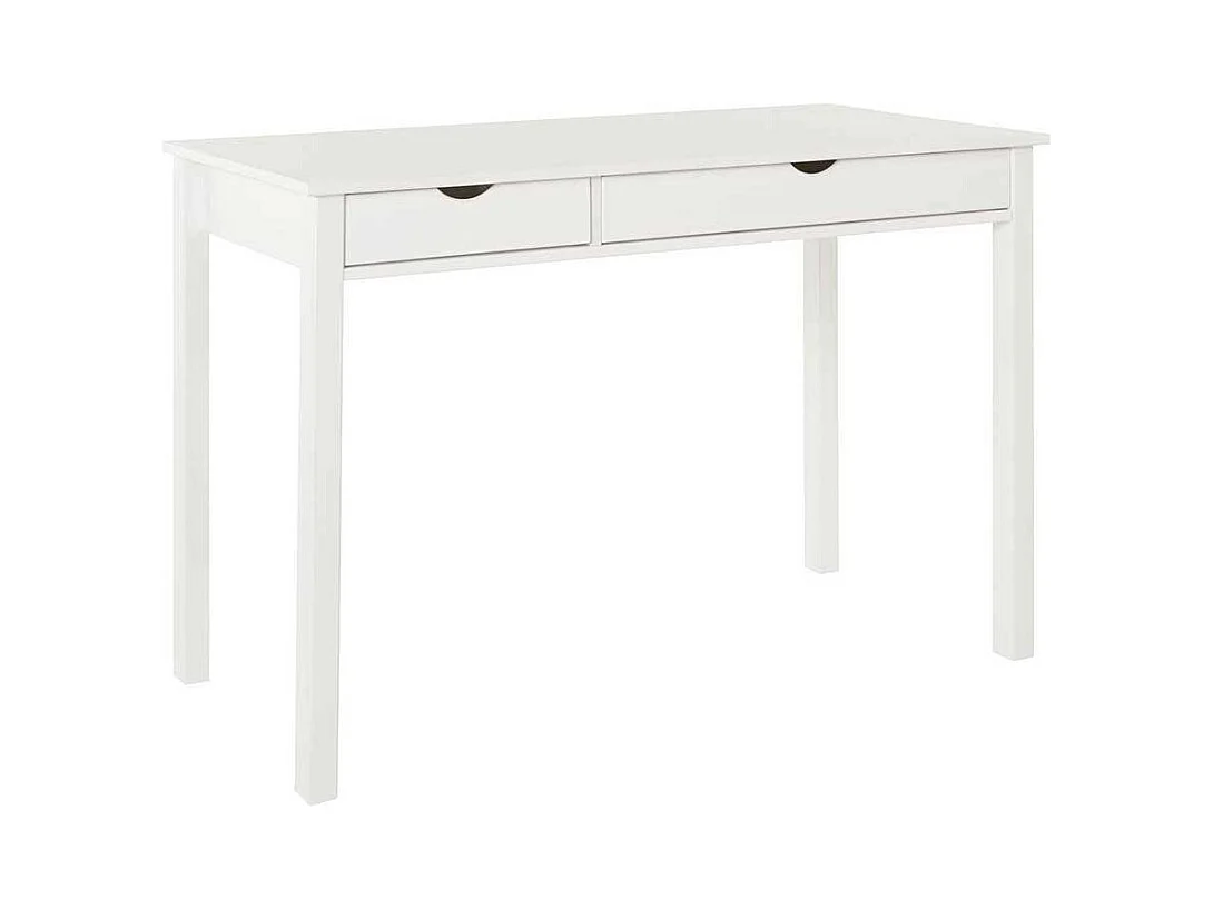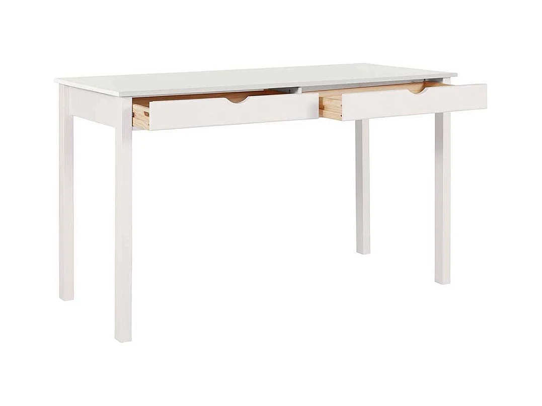 Schreibtisch aus Kiefer Massivholz Weiß lackiert zwei Schubladen