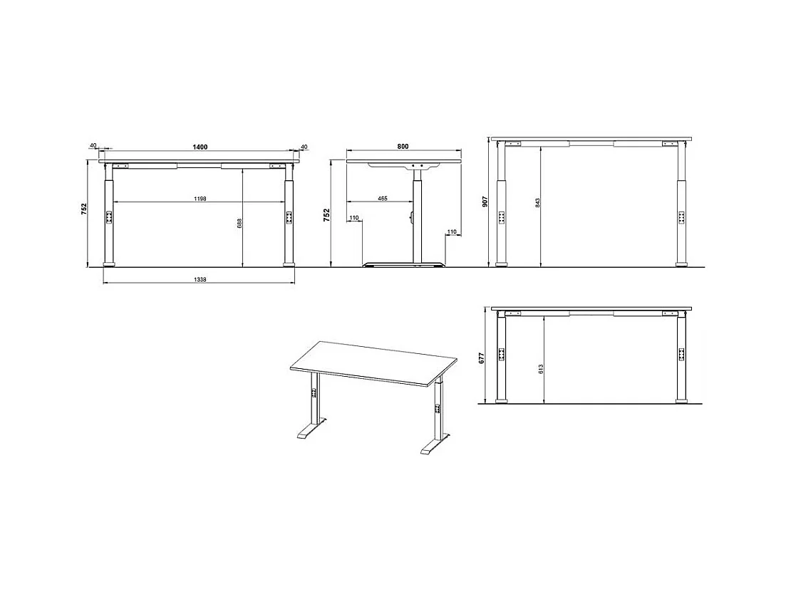 Schreibtisch Bürotisch höhenverstellbar - melaminbeschichtet