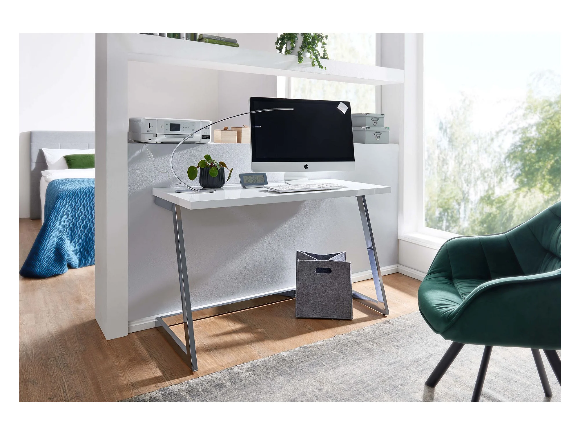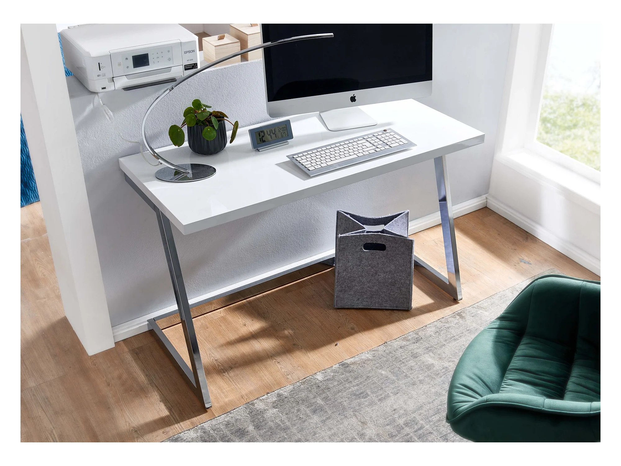 Schreibtisch Computertisch Hochglanz Weiß 120 cm Tisch Büro Metall