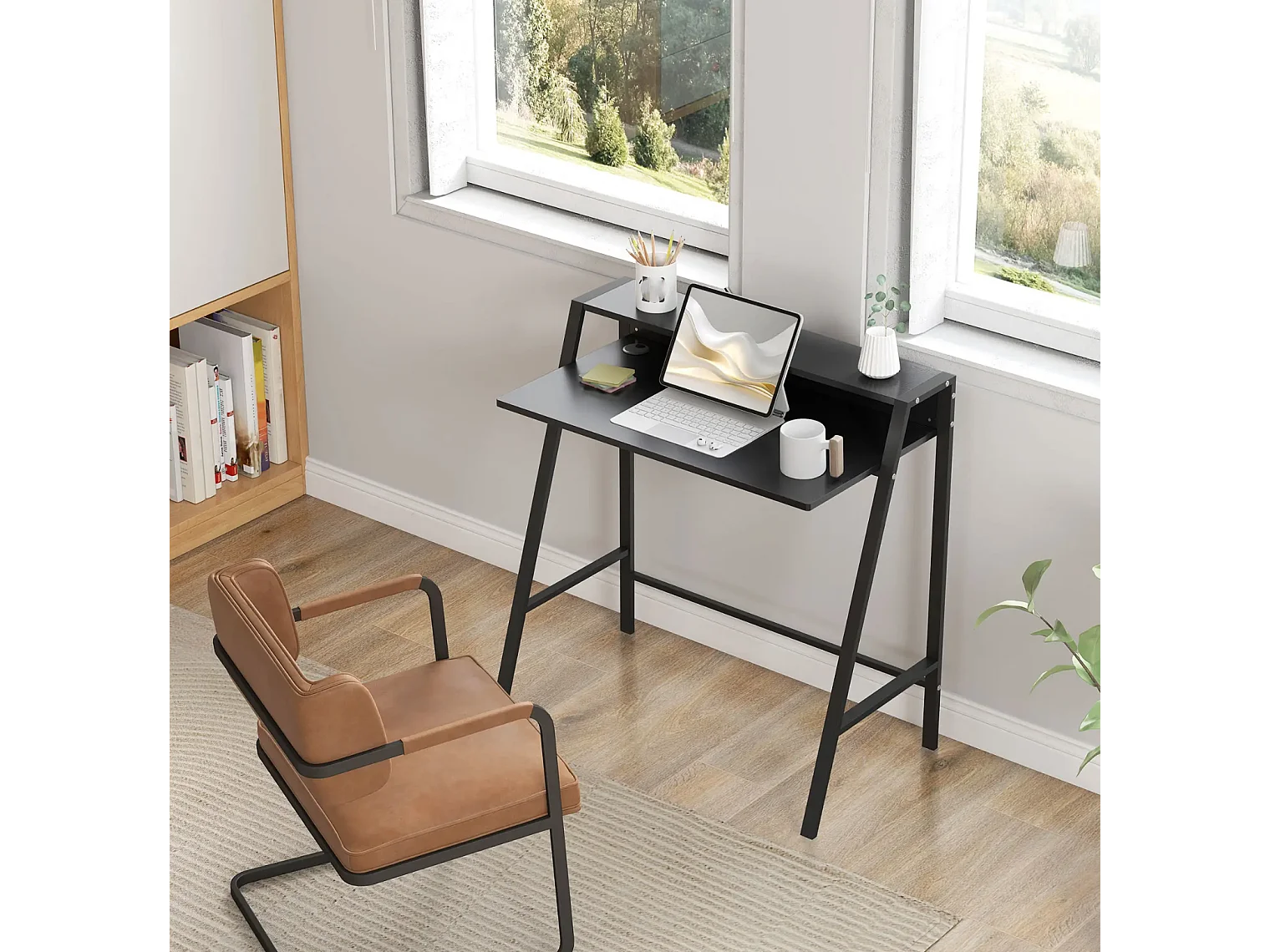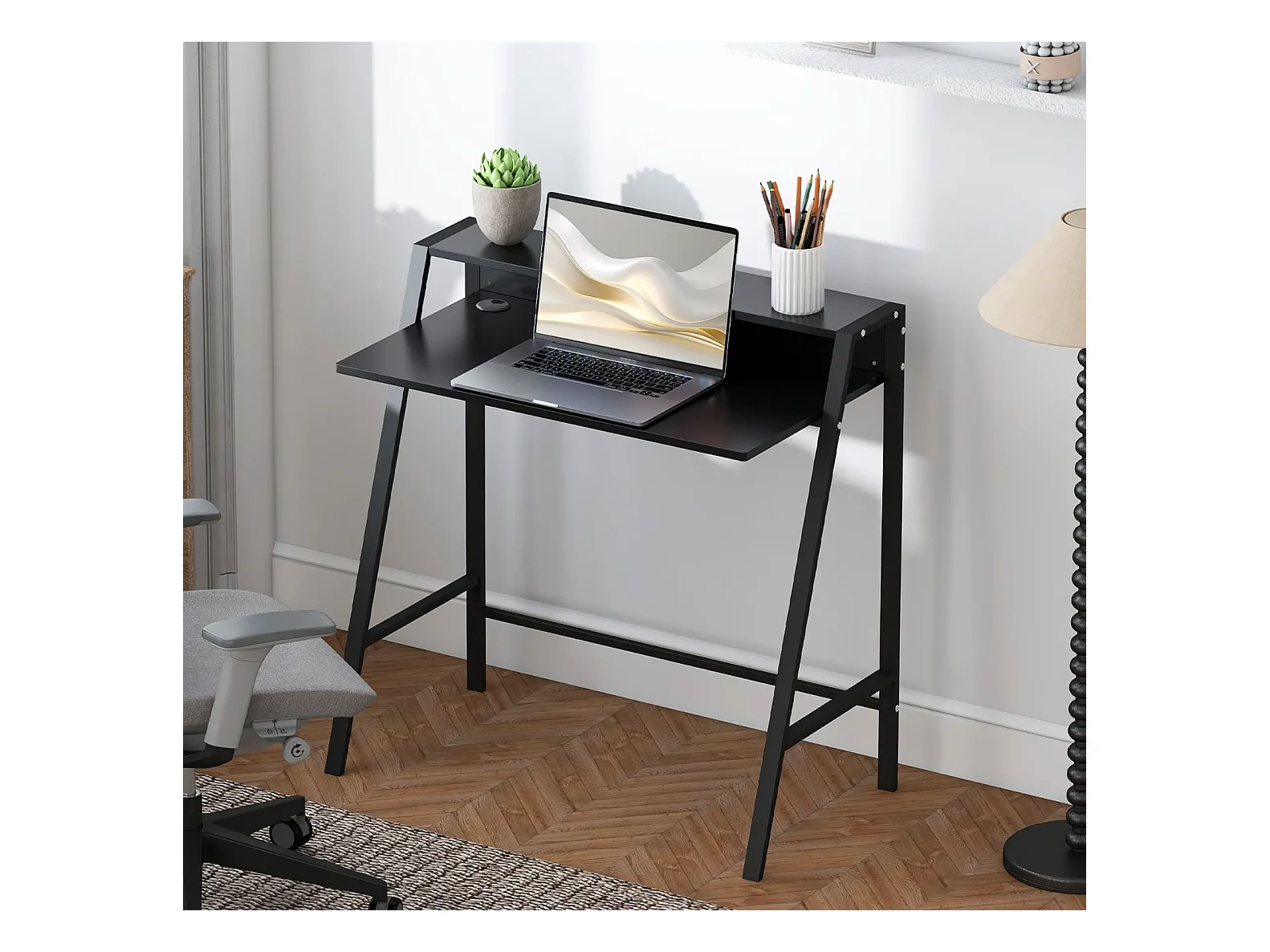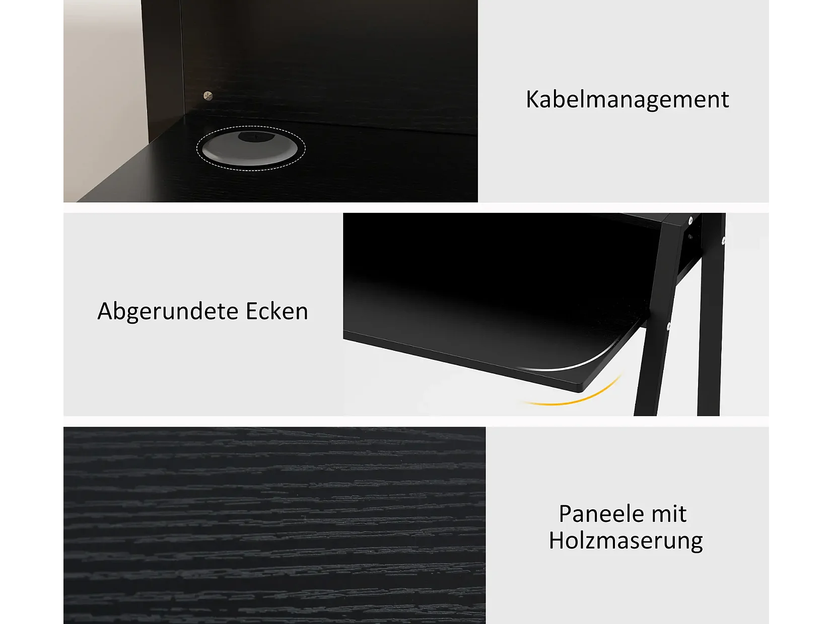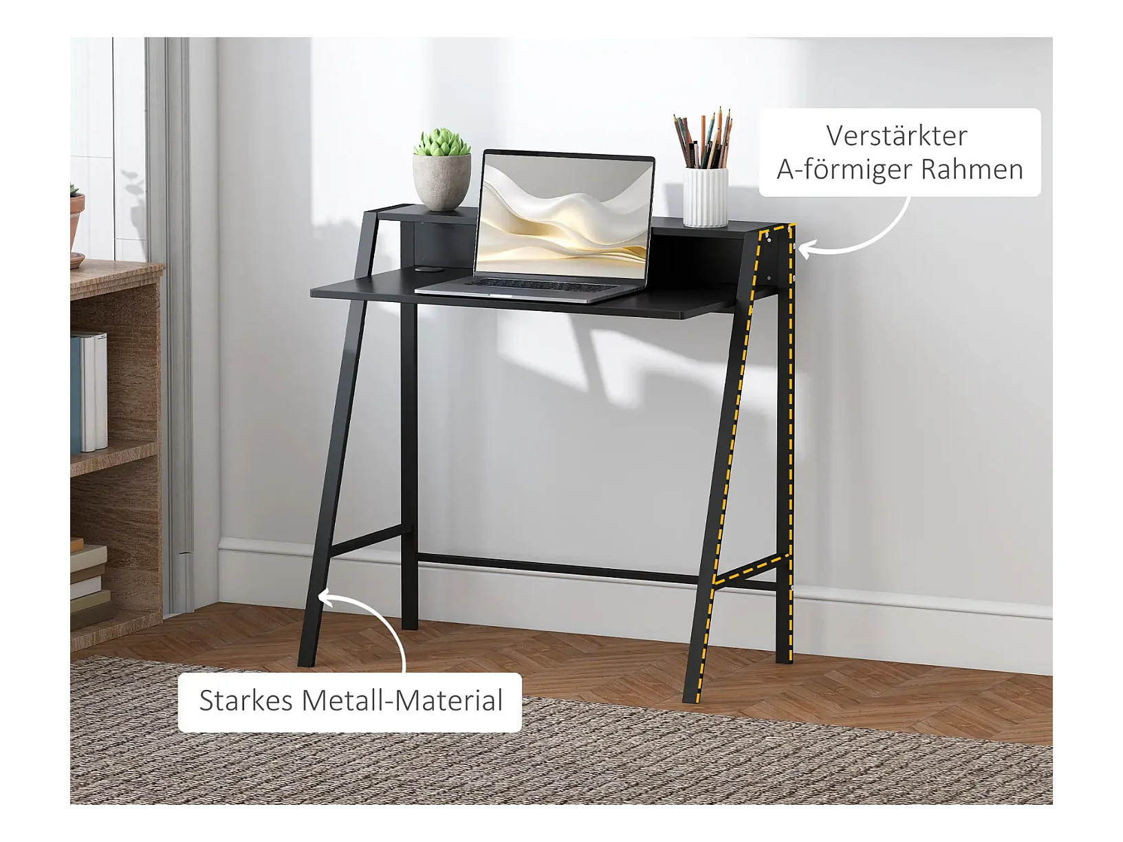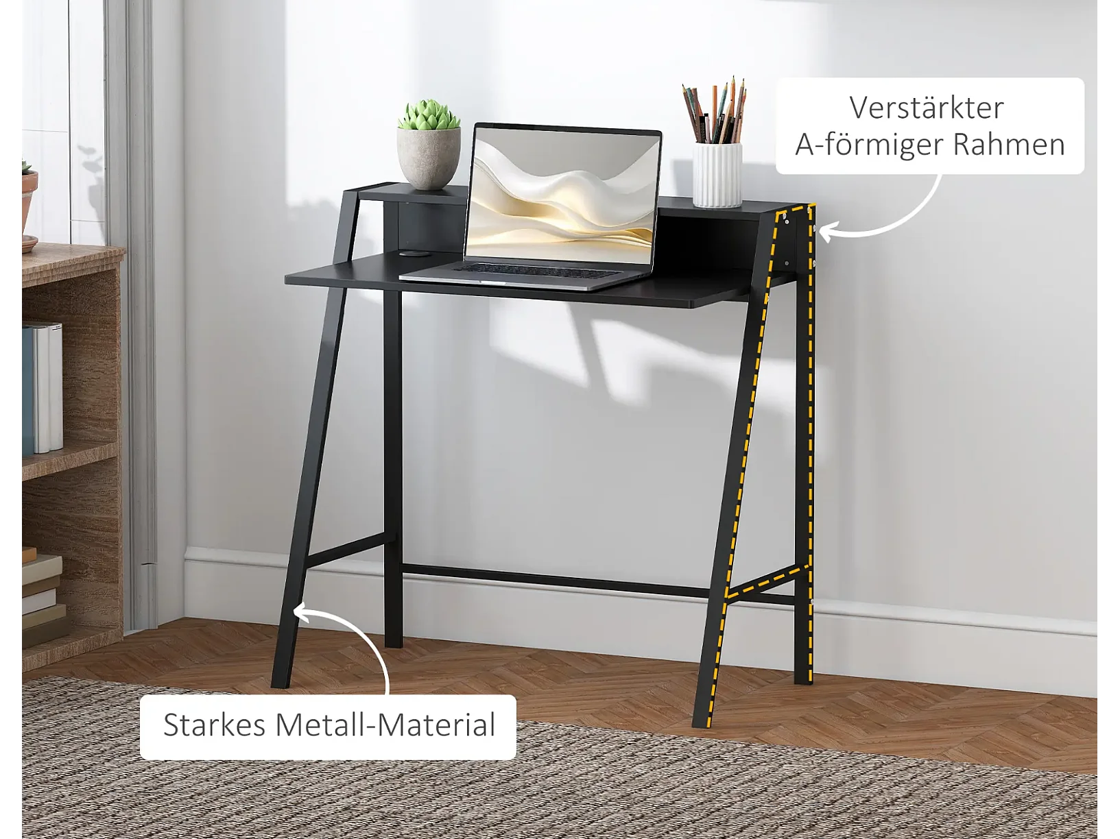 Schreibtisch, Computertisch mit Ablage und Kabel Management, Schreibtisch mit Metallgestell für Arbeitszimmer, Schlafzimmer, Home Office, 84 x 45 x 85 cm