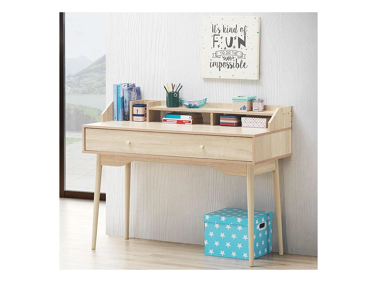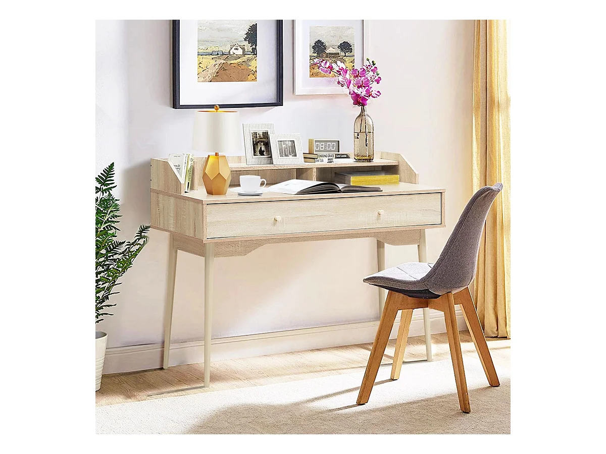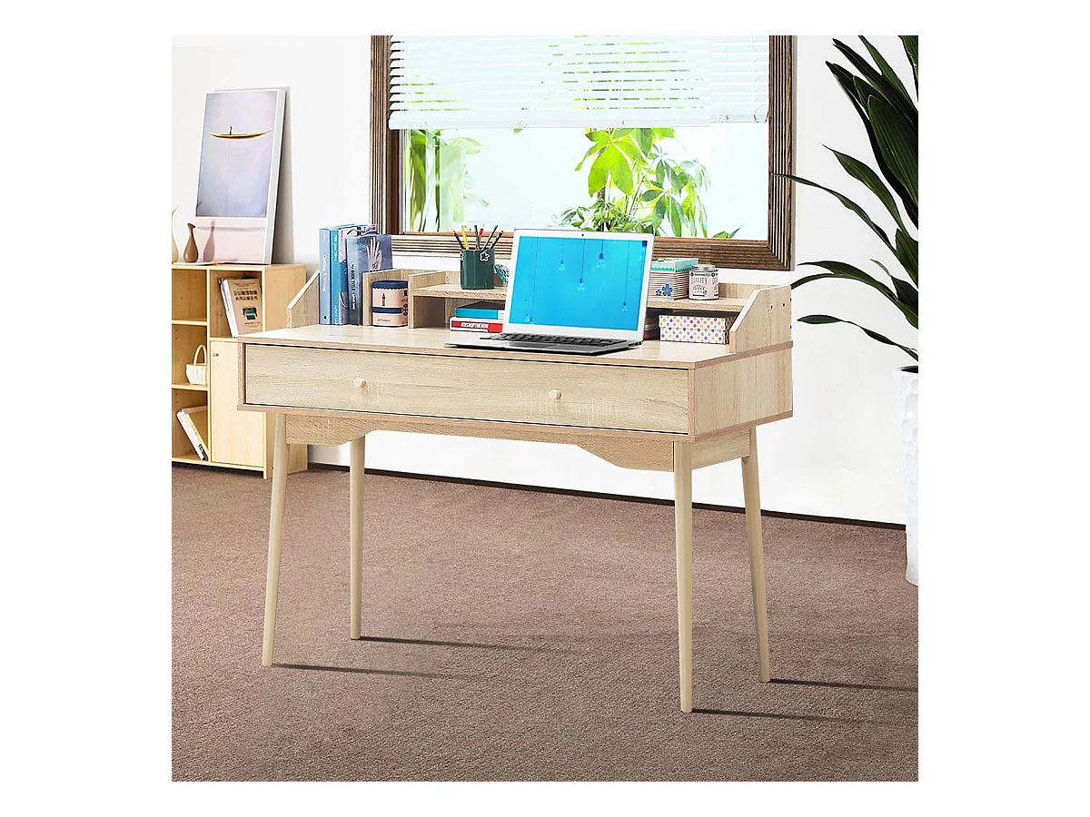Schreibtisch Computertisch mit Schublade Bürotisch aus Massivholz PC-Arbeitsplatz 120 x 50 x 93 cm Natur