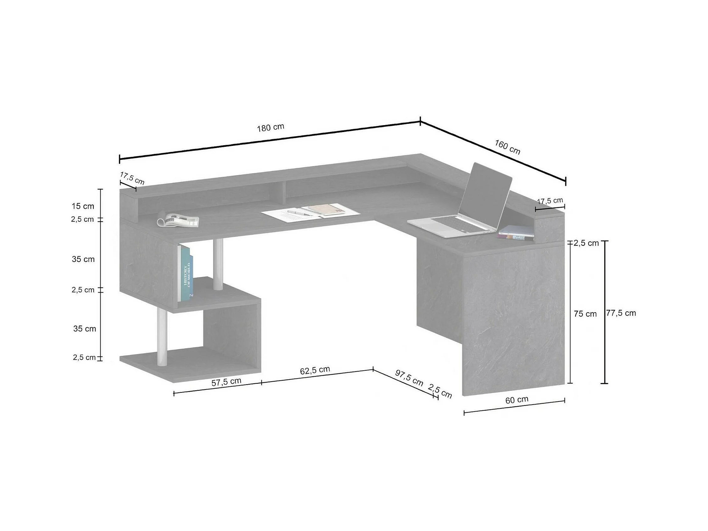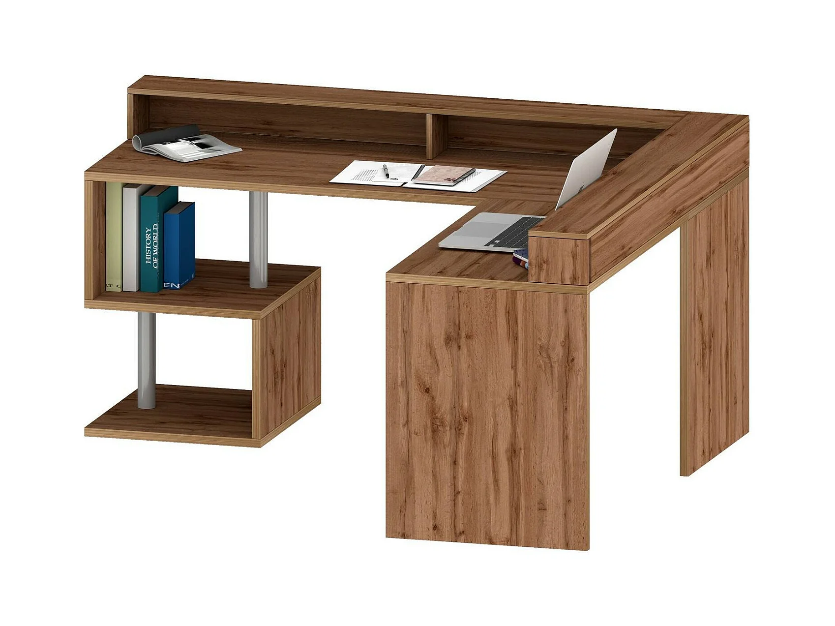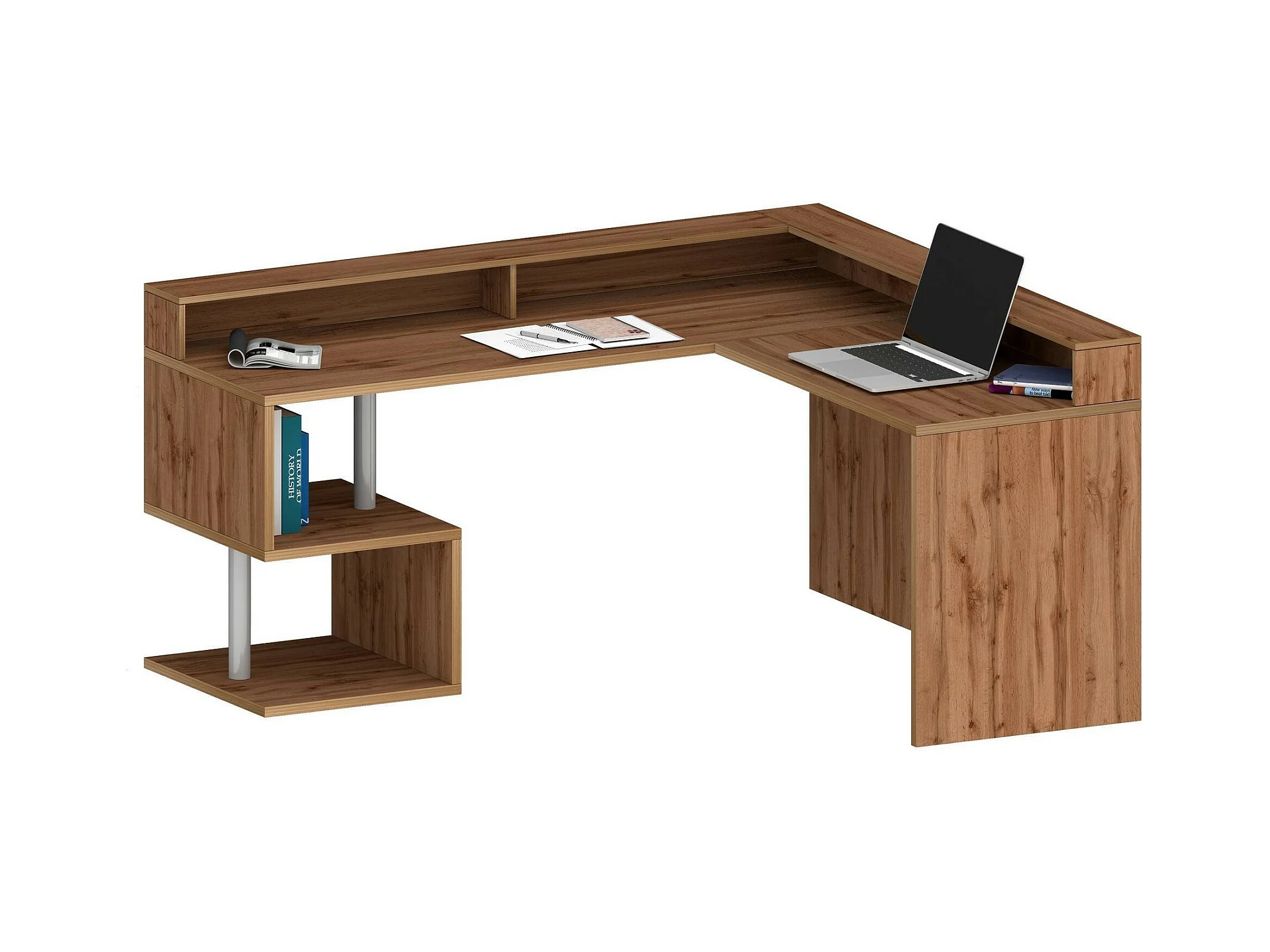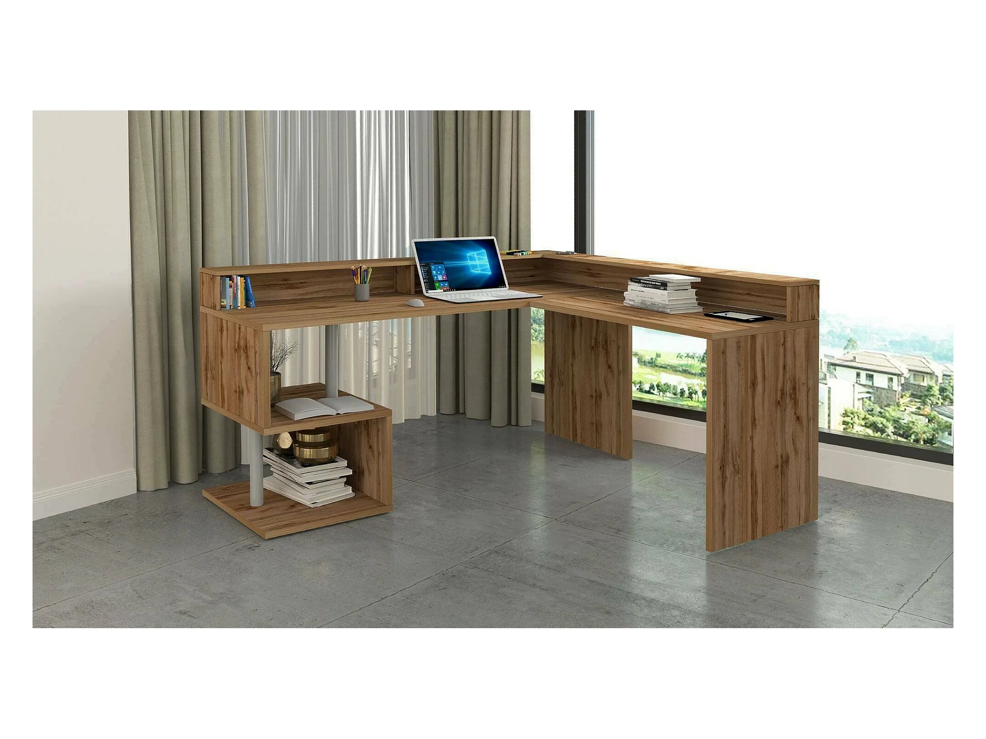 Schreibtisch Dcharpentie, Eckschreibtisch mit Ablagefächern, Mehrzweck-Büroschreibtisch mit Platte, 180x92,5x160 cm, Eiche
