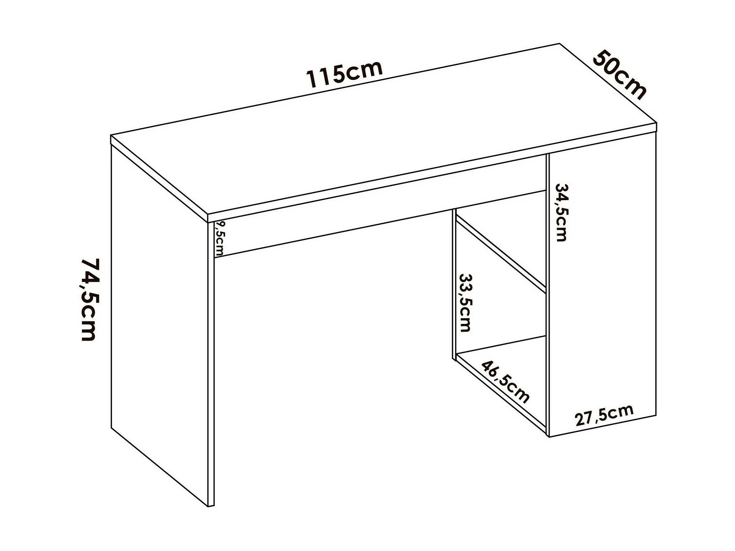 Schreibtisch Dfalc, Mehrzweckschreibtisch für Büro oder Schlafzimmer, linearer Arbeitstisch mit Regalen, 115 x 50 x 74 cm, Eiche und Weiß